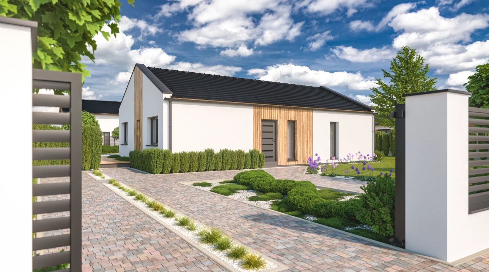 Jednoduchá architektura zapadne do jakéhokoliv prostředí. Přehledná dispozice s vyváženou velikostí místností dokazuje, že dům je navržen s důrazem na praktické bydlení pro až čtyřčlennou rodinu. Přesahy střechy zabraňují přehřívání interiéru. Obytný komfort zvyšuje kryté parkování u vstupu do domu.