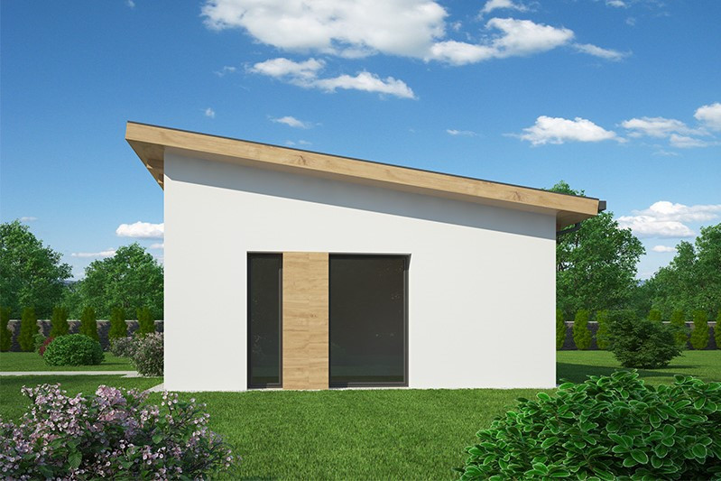 Dispozice domu se hodí jak pro starší klienty, pro které by byl větší obytný prostor již nadbytečný, tak pro mladou rodinu s jedním dítětem. Hlavní část domu je oddělena od garáže vstupním prostorem. Tento je však plně krytý střechou, a vytváří tak dokonalé zázemí pro vstup nejen do domu, ale i do zahrady.
