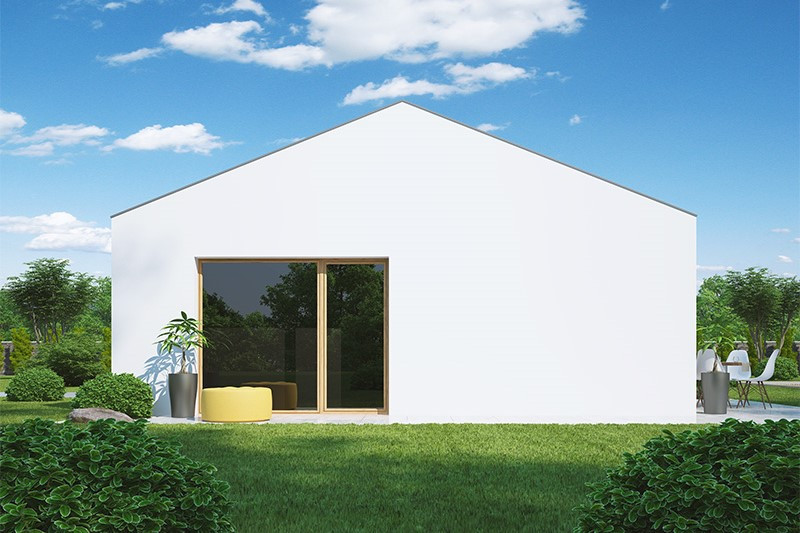Jednopodlažní dům o dispozici 3 + kk + g je vhodným řešením pro rodiny uvažující o jednom dítěti či jako řešení bydlení na stáří. Dům má půdorys tvaru L, kdy je dispozičně dělen na společenskou a klidovou zónu.