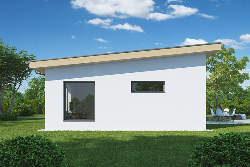 Dispozice domu se hodí jak pro starší klienty, pro které by byl větší obytný prostor již nadbytečný, tak pro mladou rodinu s jedním dítětem. Hlavní část domu je oddělena od garáže vstupním prostorem. Tento je však plně krytý střechou, a vytváří tak dokonalé zázemí pro vstup nejen do domu, ale i do zahrady.