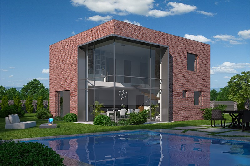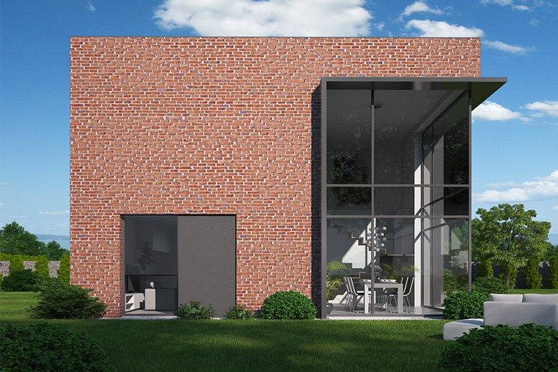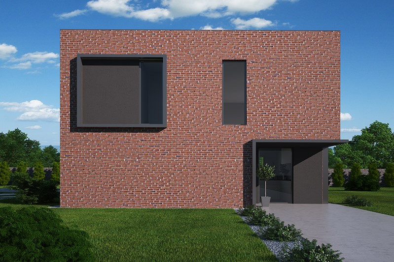Výrazný moderní dům, který určitě nepřehlédnete. Je vhodný především do města, do nové zástavby, postačí pro něj malý pozemek. Zven... čí zaujme kombinace prosklených ploch, režné cihelné fasády a originálních architektonických detailů. Nejzajímavějším prvkem je společný obývací prostor s otevřeným schodištěm a velkoryse proskleným nárožím, které je vysoké přes dvě podlaží. I při malé zastavěné ploše má dům prostorné zádveří a šatnu, v patře 3 ložnice a komfortní zázemí.