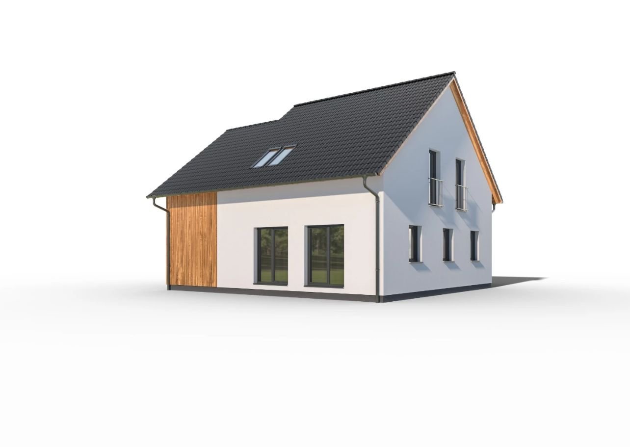 Dům nabídne pohodlné bydlení až pětičlenné rodině. Oblíbený bude jistě společný obývací prostor ve tvaru L s velkou kuchyní. V podkoro... ví se nacházejí prostorné dětské pokoje, nadstandardně velká ložnice rodičů a studio, vhodné jako další ložnice nebo pro práci z domova. Výhodou je také integrovaná garáž.