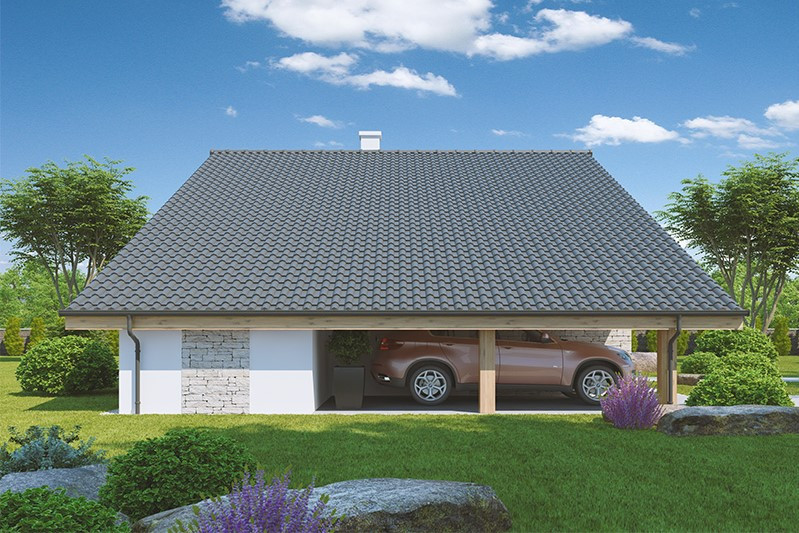 Dispozice domu se hodí jak pro starší klienty, pro které by byl větší obytný prostor již nadbytečný, tak pro mladou rodinu s jedním dítětem. Hlavní část domu je oddělena od garáže vstupním prostorem. Tento je však plně krytý střechou, a vytváří tak dokonalé zázemí pro vstup nejen do domu, ale i do zahrady.