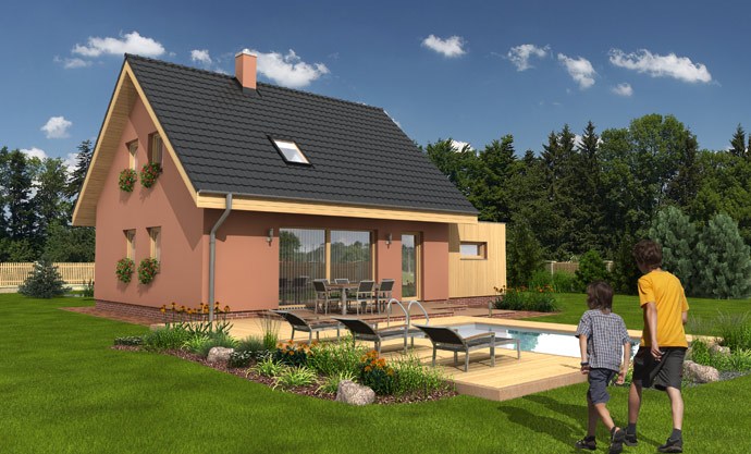 Díky možnosti zvolit různý tvar střechy dům dobře zapadne do městského i venkovského prostředí. Dispozice nabízí nadstandardní komfort pro až pětičlennou rodinu – velké pokoje a pohodlné zázemí včetně potřebného úložného prostoru.