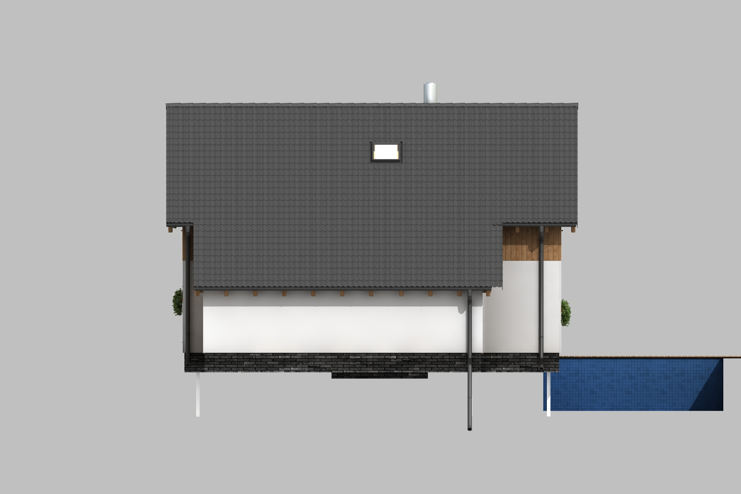 Atypické zpracování tradičního tvaru se sedlovou střechu dává tomuto domu zajímavý moderní vzhled. Uvnitř se nachází pohodlné bydlení pro čtyřčlennou rodinu s velkým společným obývacím prostorem, příjemnou krytou terasou, prostornými pokoji a zázemím, které poskytne vše, co rodina potřebuje.