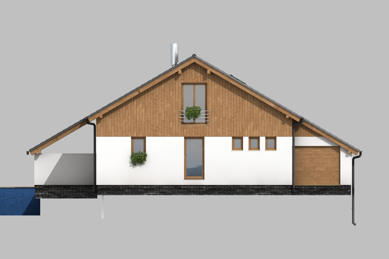 Dům s členitými fasádami, polovalbovou střechou a vikýři se bude hodit do malého města nebo na venkov. Poskytne pohodlné bydlení až šestičlenné rodině. Za pozornost stojí prostorná vstupní hala propojená s velkým obývacím pokojem, v podkroví se nacházejí prostorné ložnice a velká pracovna. Zázemí odpovídá současným nárokům na pohodlné bydlení, včetně garáže integrované v domě. Pokoj v přízemí lze využít k vícegeneračnímu bydlení.