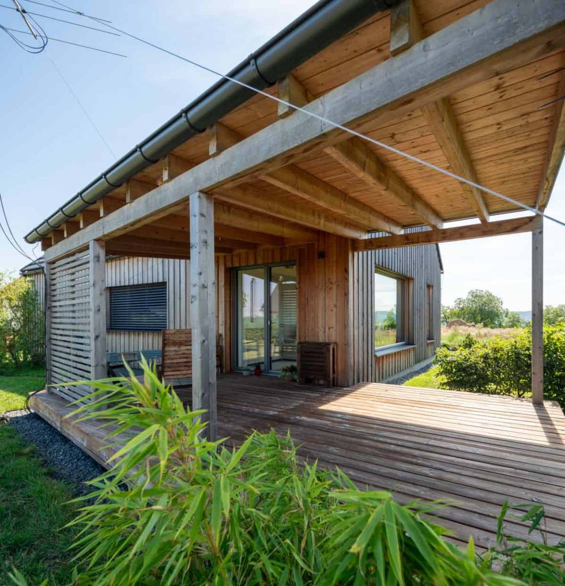 Tento dům ukazuje, že i na menší ploše lze vytvořit pohodlné a zdravé bydlení v souladu s přírodou. Nabízí vše, co potřebují dva lidé,... a zároveň dostatek prostoru pro rodinné návštěvy, provoz domácnosti je nízkonákladový. Multifunkční nábytek na míru propojuje kuchyň s obývacím pokojem, zatímco galerie poskytuje dostatek soukromí pro hosty.