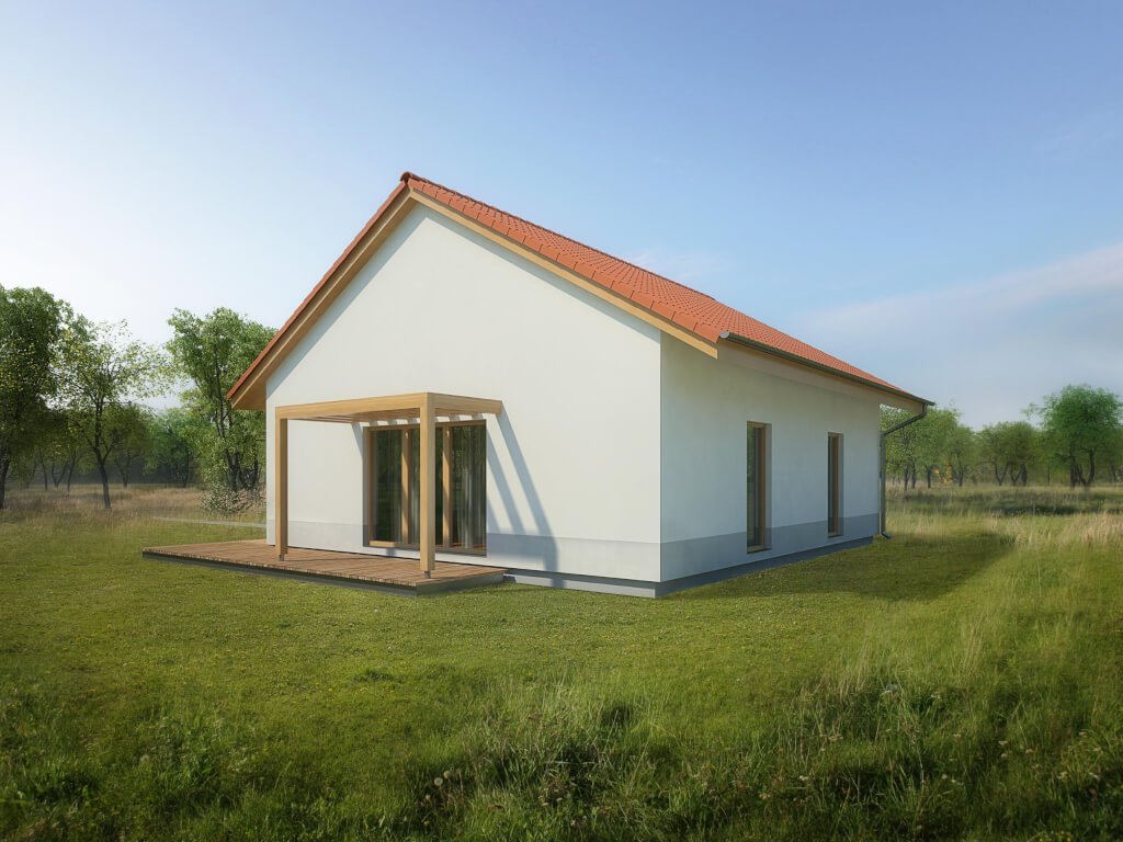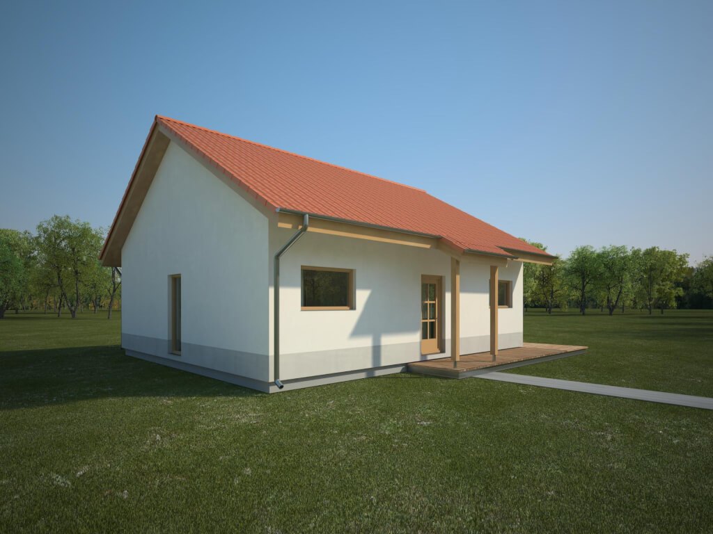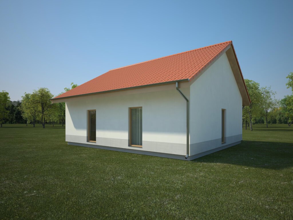 Jednoduchý dům poskytne praktické bydlení pro pár nebo rodinu s 1 dítětem, svým vzhledem je určen především na venkov nebo do malého měst... a. Má úspornou dispozici s obývacím prostorem ve tvaru L, ze všech místností včetně koupelny se dá přímo vyjít na zahradu. Dům se nabízí za výhodnou cenu.