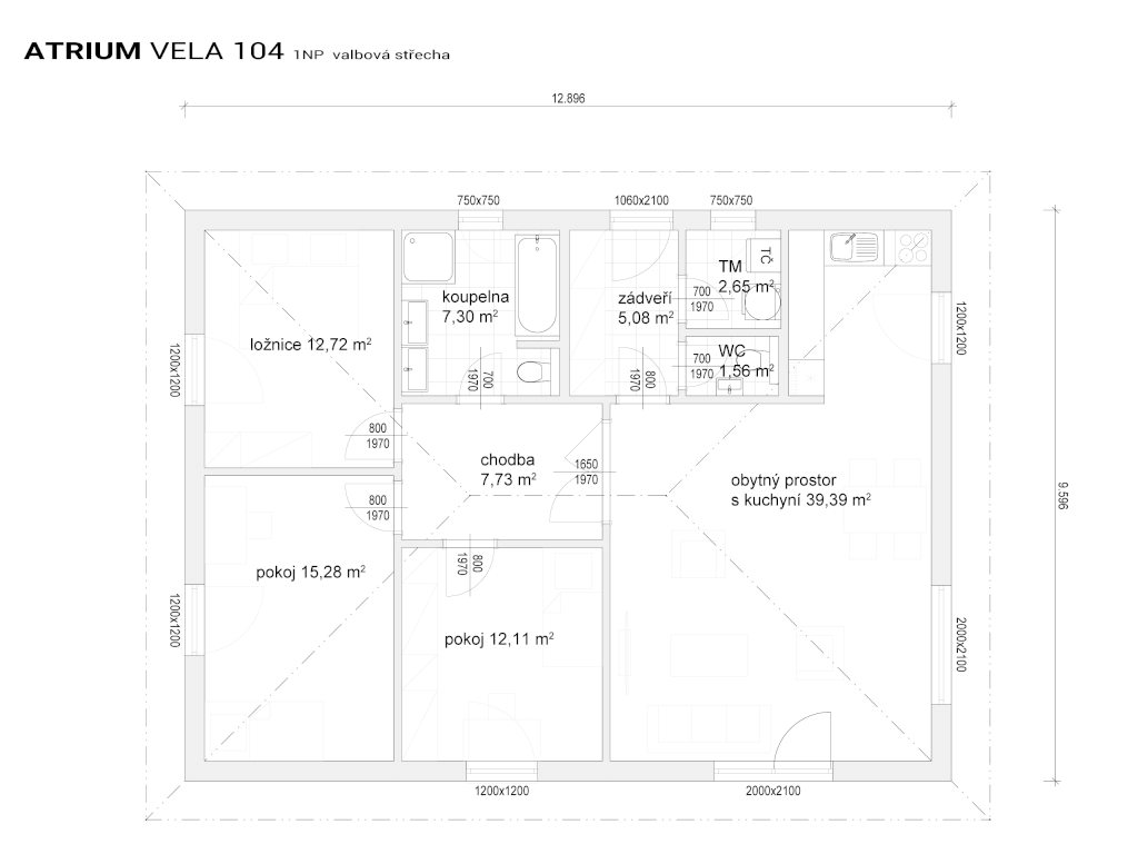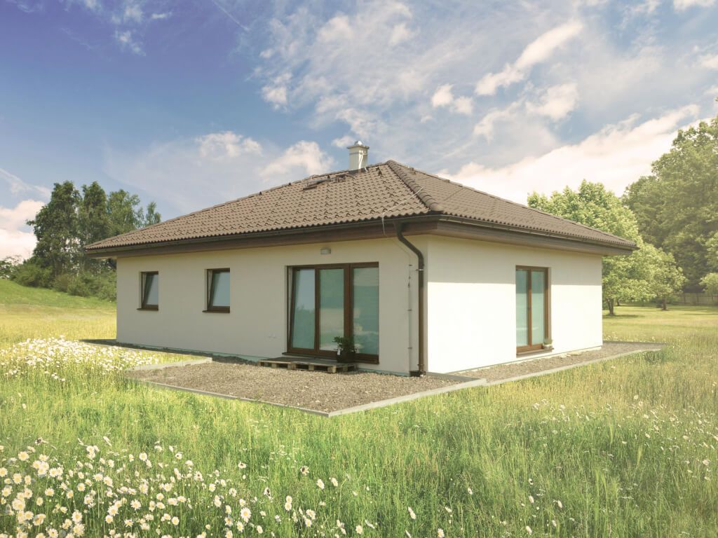 Hledáte malý přízemní dům s obdélníkovým půdorysem pro čtyřčlennou rodinu? Pak jste ho právě našli, Vela 104 je ta pravá! Do půdorysného řešení se vešel velký obývací pokoj s kuchyní, tři prostorné pokoje a koupelna. Velká prosklená francouzská okna pouštějí do interiéru velké množství světla. Francouzským oknem projdete na příjemnou terasu orientovanou do zahrady. Dům můžeme upravit jako bezbariérový. Probarvení fasády nebo malý dřevěný obklad u oken dům ještě více oživí.