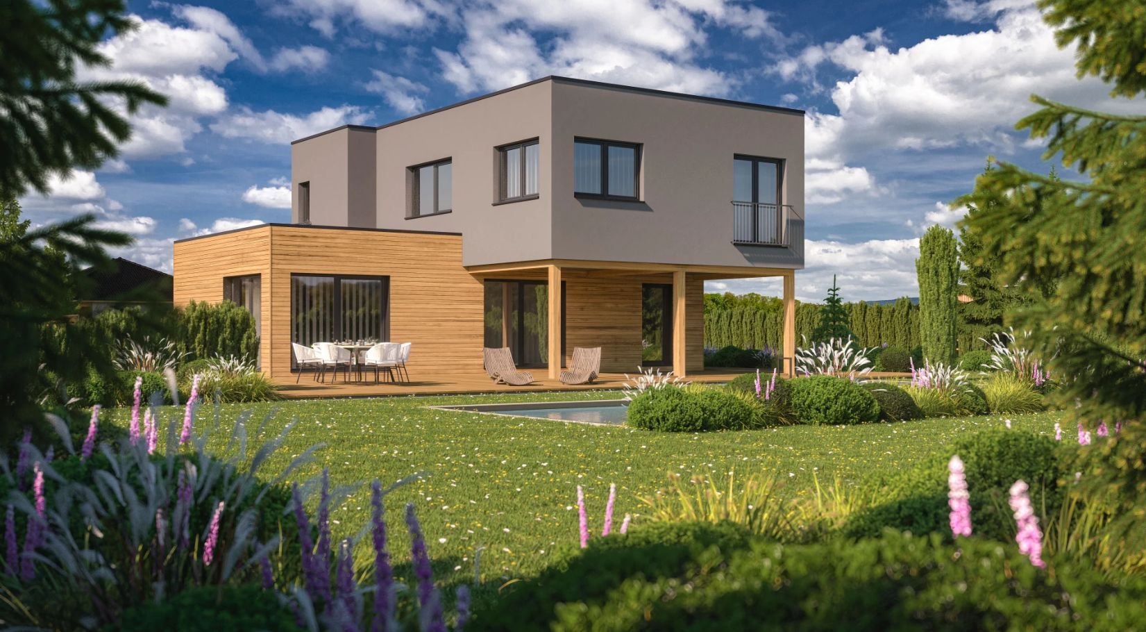 Dům spojuje promyšlenou dispozici a moderní komfort s ekologickými aspekty. Je součástí harmonického obytného celku s upravenou zelení a komunitním prostorem. Díky vyššímu hřebeni střechy mají pokoje v podkroví nadstandardní využitelný prostor.