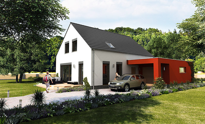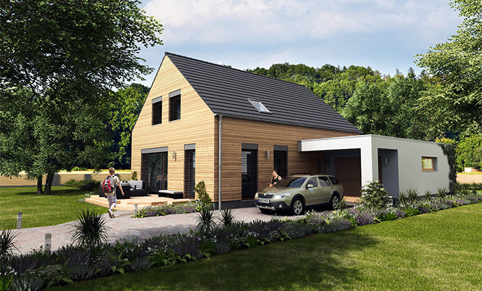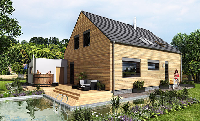 Dům postavený ve volné krajině elegantně spojuje tradiční tvar venkovského stavení s moderním designem. Má společnou obývací část v přízemí a ložnice v podkroví. Díky zvýšené nadezdívce je i pod šikmými stropy dost místa a velká okna dávají hodně světla. Odolná konstrukce z tvárnic