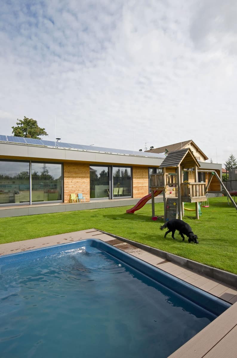 Přízemní dům jednoduchého moderního tvaru byl nejen přáním majitelů, ale také východiskem ze situace na poměrně velké, ale obtížně zastavitelné parcele v jedné z příměstských pražských čtvrtí.