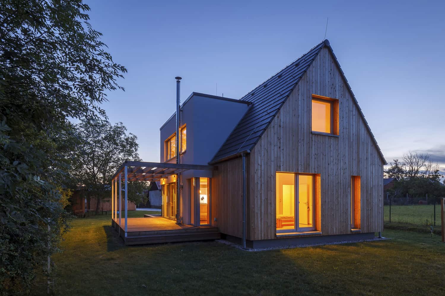Moderní dvoupodlažní dřevostavba na okraji malé obce, s výhledem na usměvavou krajinu Hané, splnila sen mladé rodiny o zdravém a příjemném bydlení. Stavba dokazuje, že dům s promyšlenou dispozicí může i při nevelké zastavěné ploše optimálně sloužit v každodenním provozu.