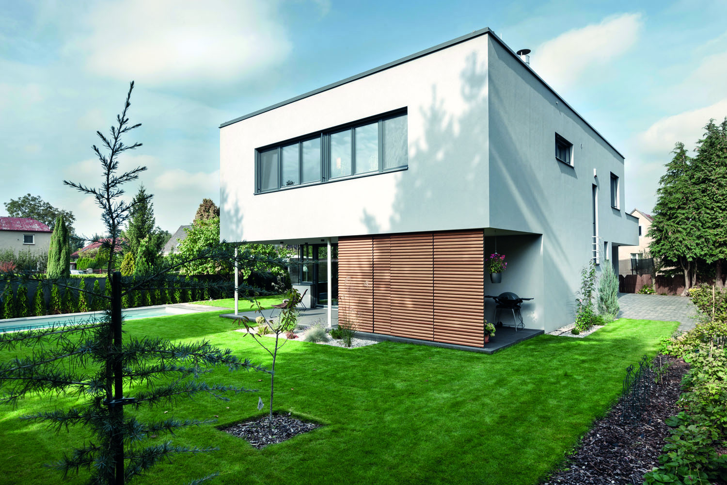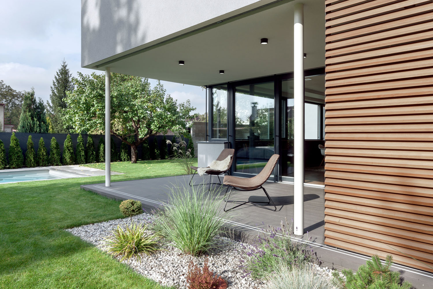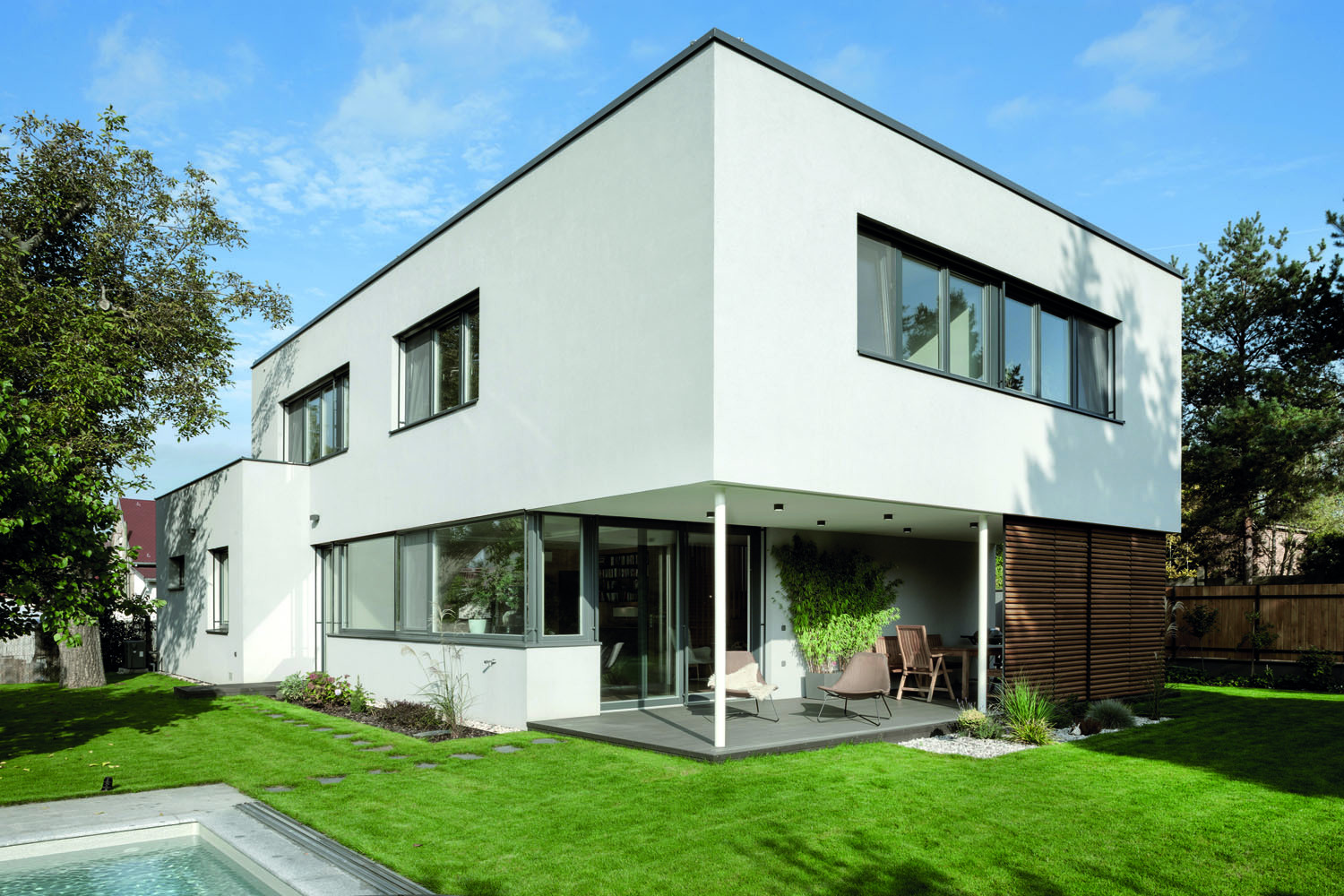 „Bylo dokonce vydané platné stavební povolení na dílčí přestavbu původního domu a dostavbu tzv. salámovou metodou – část domu zůstane zachovaná a něco se k ní přistaví. Toto řešení bylo nepoužitelné z několika důvodů. Starší podsklepený objekt měl přízemí zhruba metr nad úrovní terénu zahrady a majitelé si přáli moderní dům bezbariérově propojený se zahradou. Považovali to za jeden z hlavních aspektů kvality bydlení. Kromě toho projekt na rekonstrukci nebyl energeticky úsporný. Na druhou stranu stavební povolení umožňovalo začít hned stavět,“ přibližuje architekt Tomáš Klanc z ateliéru Klanc… architekti, kterého majitelé oslovili na základě referencí v médiích a na internetu.