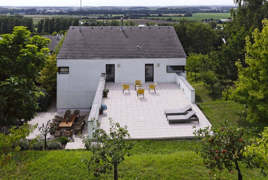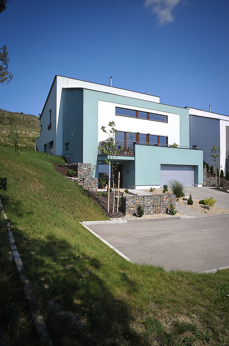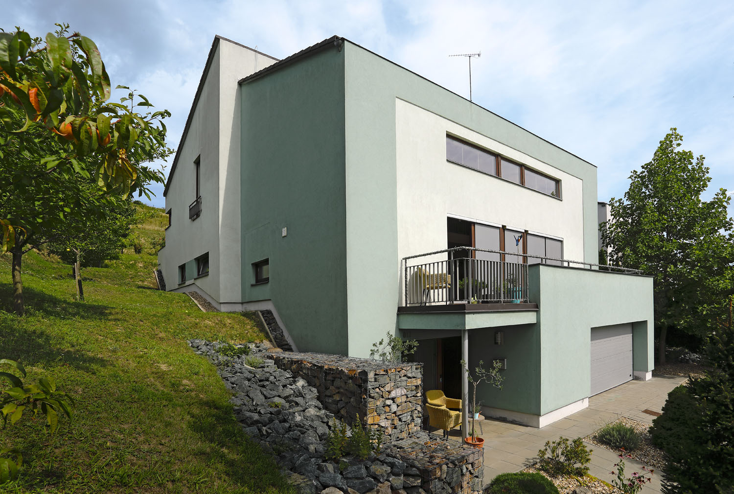 Dům postavený na terasovitě uspořádaném pozemku v poměrně prudkém svahu si stále zachovává všechny původní výhody: praktickou dispozici, krásný výhled západním směrem do krajiny a dostatek klidu a soukromí.