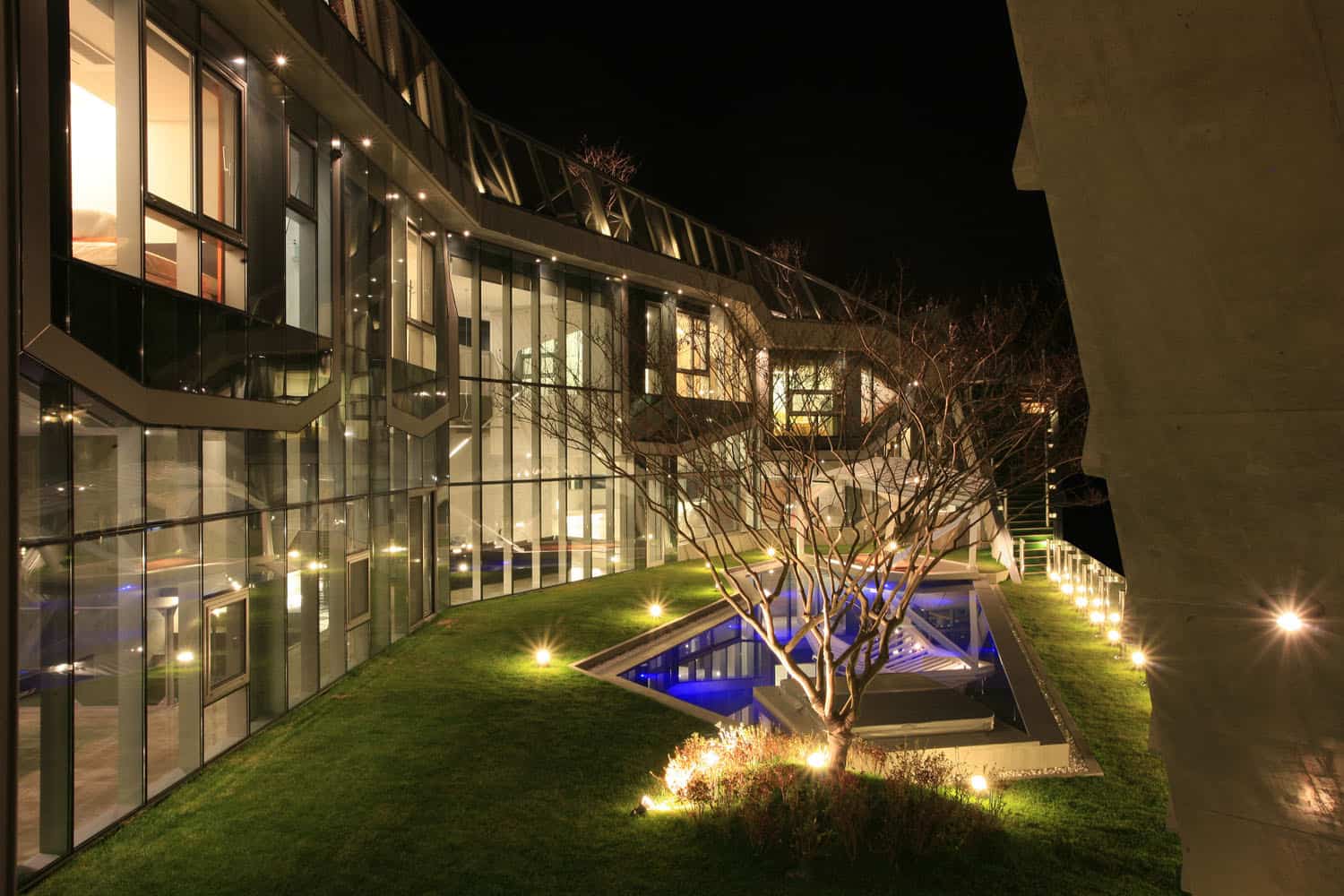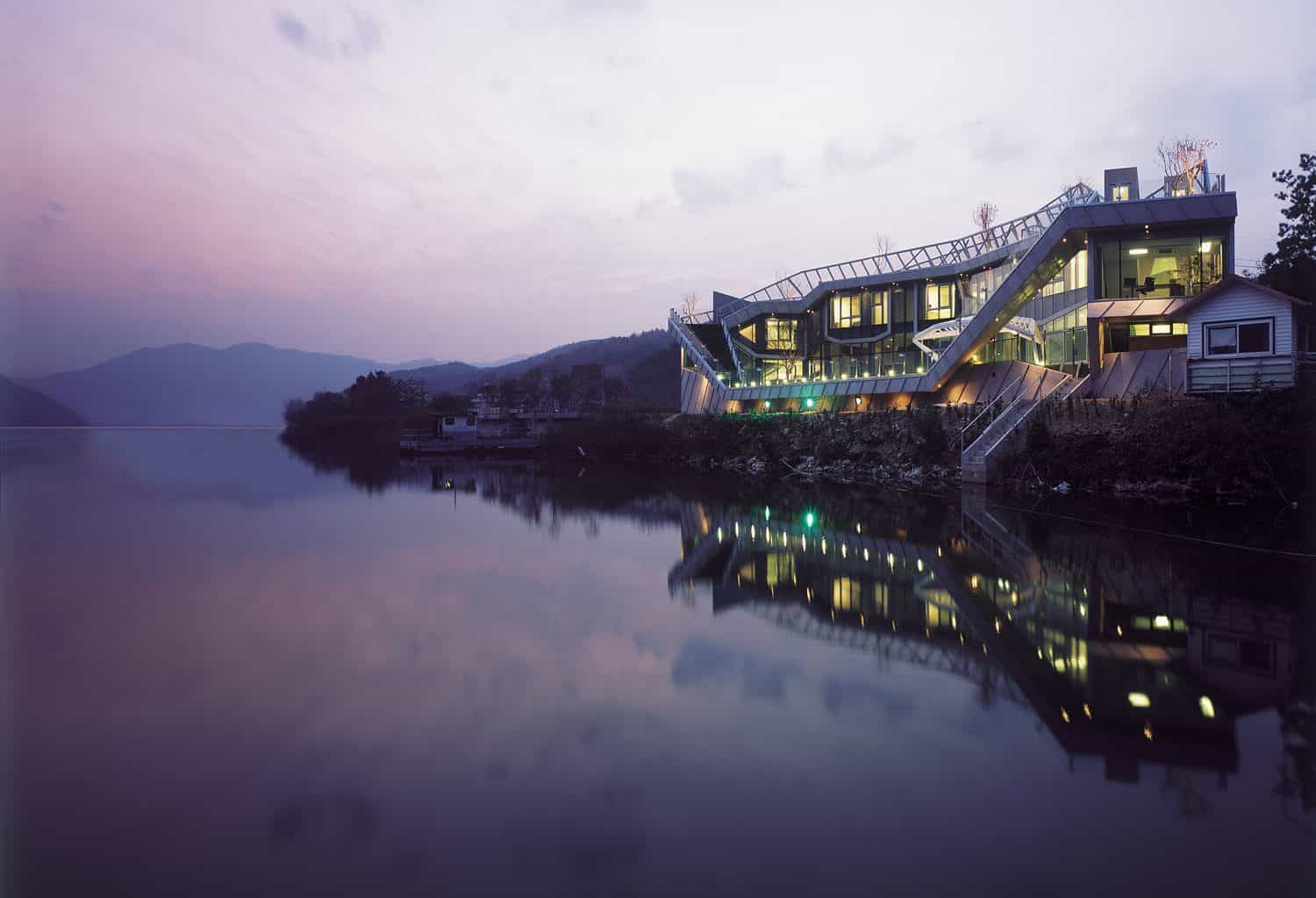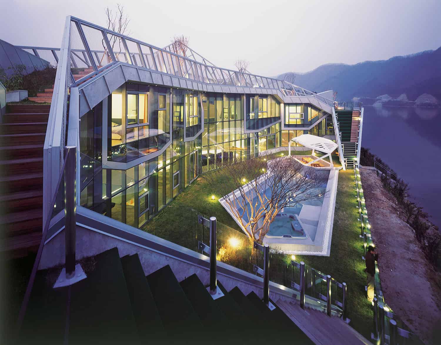Na velkém pozemku přímo na břehu řeky si architekt Hyoman Kim představoval dům jako „architektonickou přírodu“: „Mým záměrem byla harmonie řeky, krajiny a architektury. Dům otevřený slunci, vodě, čerstvému vzduchu, který bude poskytovat výhled do dálek i maximální pohodlí a bezpečí.“