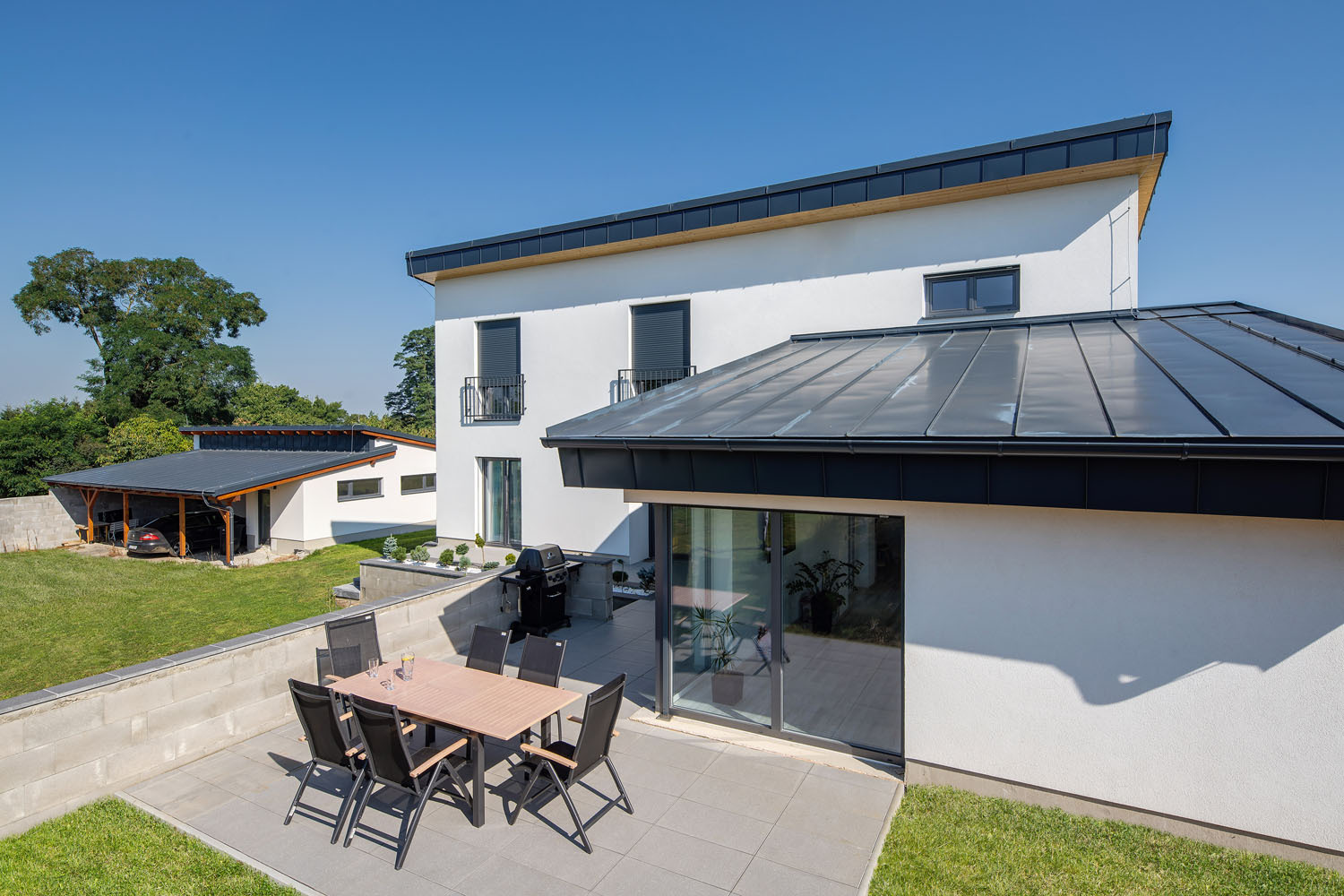 Pan Jakub Kratochvíl, investor a projektant v jedné osobě, na základě vlastních zkušeností a propočtů zvolil konstrukční systém Heluz Family 2in1 s integrovaným zateplením, který plně splňuje parametry pasivního standardu. Kompaktní tvar domu, jednoduché pultové střechy, kvalitní zdivo a okna a až do detailů promyšlené řešení s důrazem na vyvážení užitku a ceny se vyplatily – podařilo se významně snížit investiční i provozní náklady.
