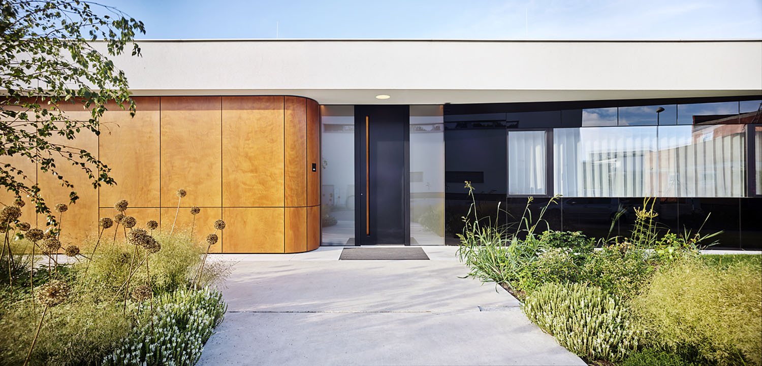 Na exkluzivním pozemku s lesem v pozadí vyrostla elegantní vila, jedinečná vnitřním prostorem, avšak pokorná a nenápadná zvenčí.