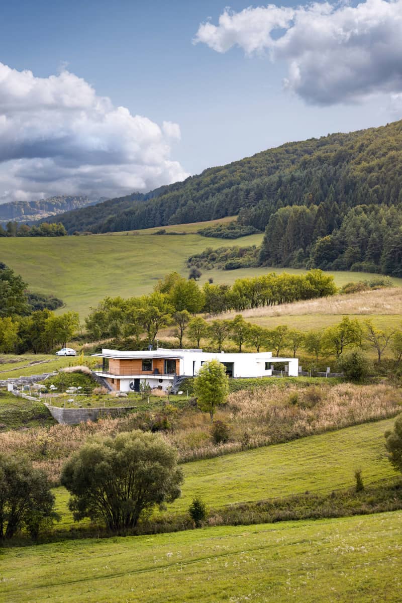 Členitý dům postavený na Slovensku vzdává hold jedinečnému místu obklopenému ze všech stran horami. Při pohledu zdálky nijak neruší své okolí a působí přirozeně a samozřejmě, jako by jej sem imaginární Stvořitel zasadil už kdysi dávno. Příroda a moderní architektura si tu vyjadřují vzájemnou empatii.