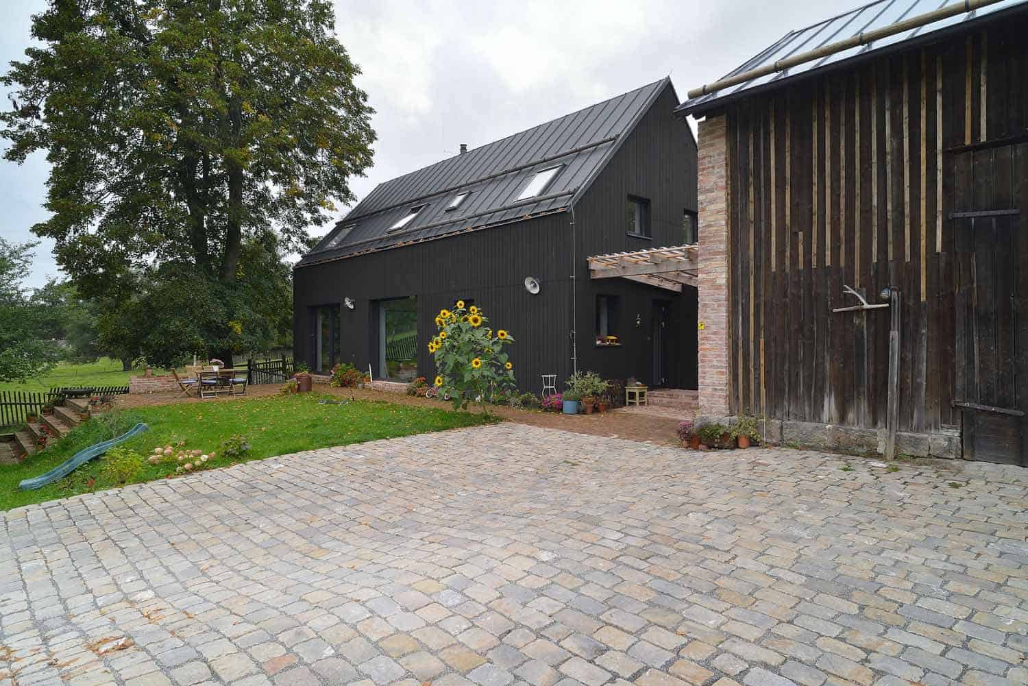 Architekt Pavel Plánička na úvod představuje základní koncept: „Starý dům, ačkoliv plný kouzel, byl svou konstrukcí, materiály i dispozicemi pevně definován, nedokázali jsme ho ‚přeložit‘ standardní rekonstrukcí. Navrhli jsme proto novostavbu, u které jsme ale dodrželi původní uspořádání i měřítko. Vznikla na půdorysu původního domu, má i stejnou výšku. Stodola zůstala téměř beze změny a na stejném místě.
