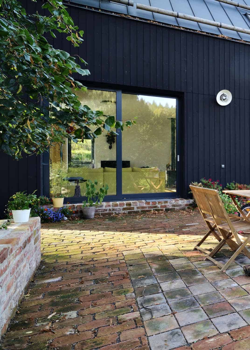 Klienti zprvu chtěli historický dům obnovit, ale brzy zjistili, že to bude složité – zdi z pískovce vymezovaly poměrně stísněné interiéry, celá stavba byla navíc vlhká, v podloží je jíl a voda tu prosakuje poměrně vysoko. „Ekonomicky to nedávalo smysl a z psychologického hlediska taky moc ne, nebyly tu vazby třeba na prarodiče. Nepočítalo se ani s tím, že bychom dům nějakým způsobem zvětšovali, což bylo trochu v rozporu s tím, že si investoři přáli otevřený obytný prostor, kde se budou cítit dobře,“ vzpomíná architekt.