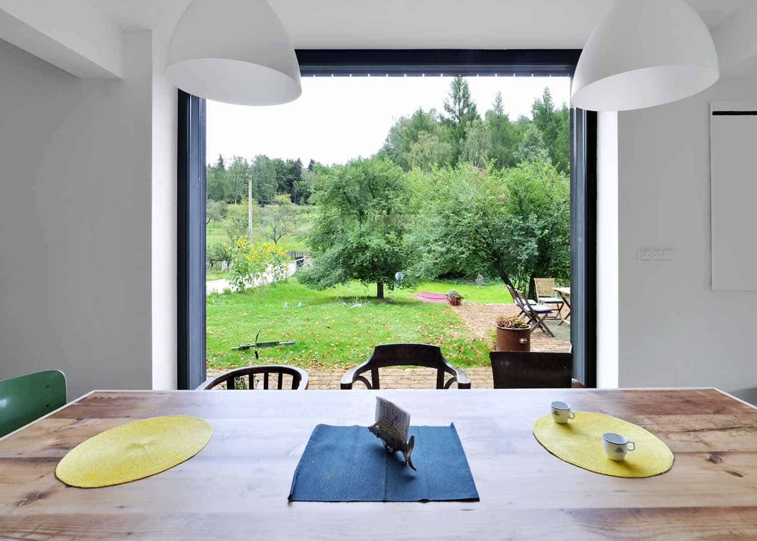 Konstrukce ze současných materiálů nám umožnily navrhnout relativně velkorysé prostory. Poměrně úzký prostor mezi stodolou a domem jsme zastřešili, podařilo se nám tak vytvořit jejich nový, bližší vztah. Navíc vzniklo závětří, které přímo nabízelo přesun hlavního vstupu do štítu. Uvolnili jsme tak jihovýchodní fasádu a otevřeli ji do zahrady.“
