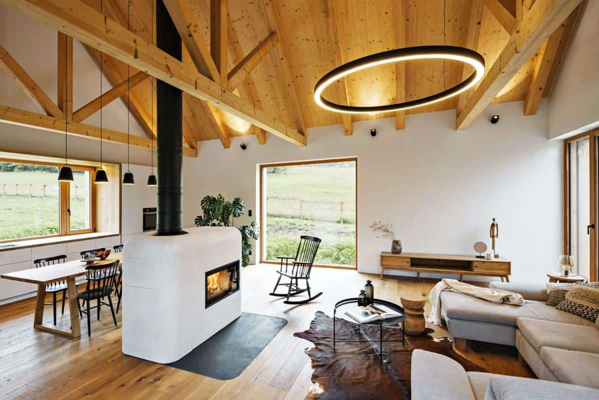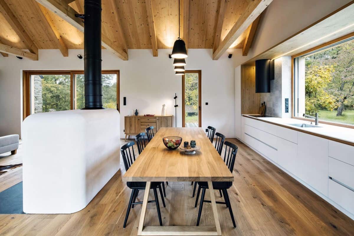 Tento kouzelný koutek přírody naši hostitelé již znali – před mnoha lety, když zakládali rodinu, v této obci již jeden dům postavili. Získali tím pádem zkušenost a jasnou představu, čemu se vyhnout, co naopak požadovat, aby jim nové bydlení přinášelo radost a aby – pomyslně – podruhé „vstoupili do téže řeky“ šťastnou nohou.
