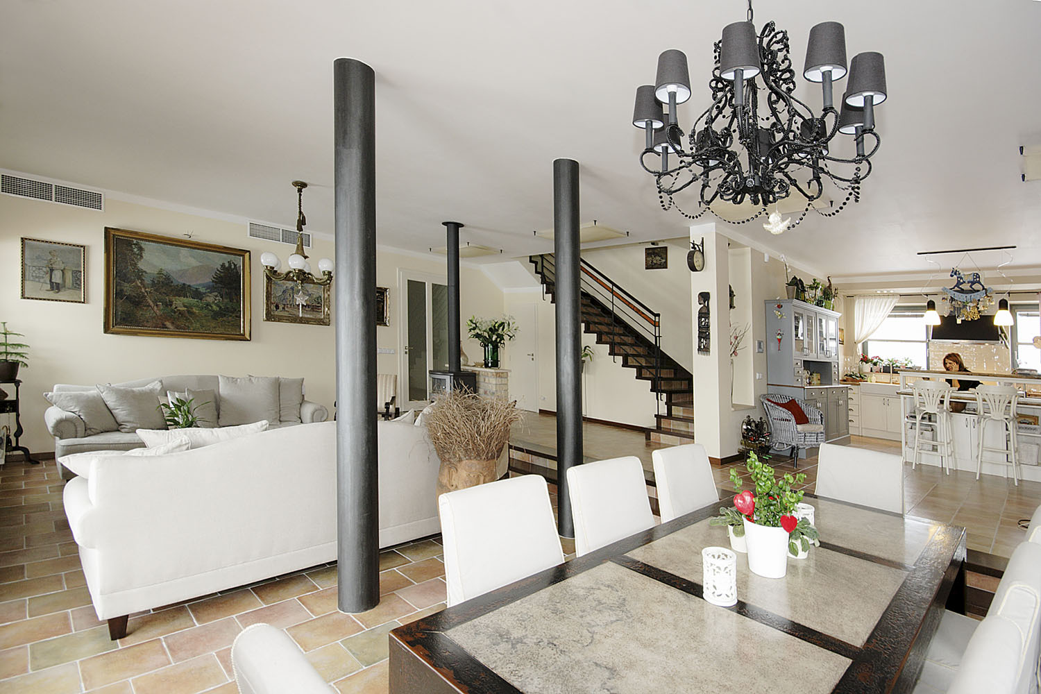 Velký, mírně svažitý pozemek s jižní orientací se nachází v kdysi bohaté obci s tvrzí, která je dnes již součástí hlavního města. Projekt domu manželé zadali Petru Noskovi, s nímž již dříve spolupracovali. „Velmi si vážím toho, že klienti mají vztah k místu bydliště, k historii a tradicím a snažili se vybudovat hodnoty, které přesáhnou horizont naší současnosti do dalších desetiletí,“ říká architekt. „Dům přímo vyzařuje dnes spíše ojedinělou ,solidnost‘. Každý předmět má svůj příběh, ke každému má rodina osobní vztah. A právě tyto hodnoty a vazby vytvářejí z domu domov.“