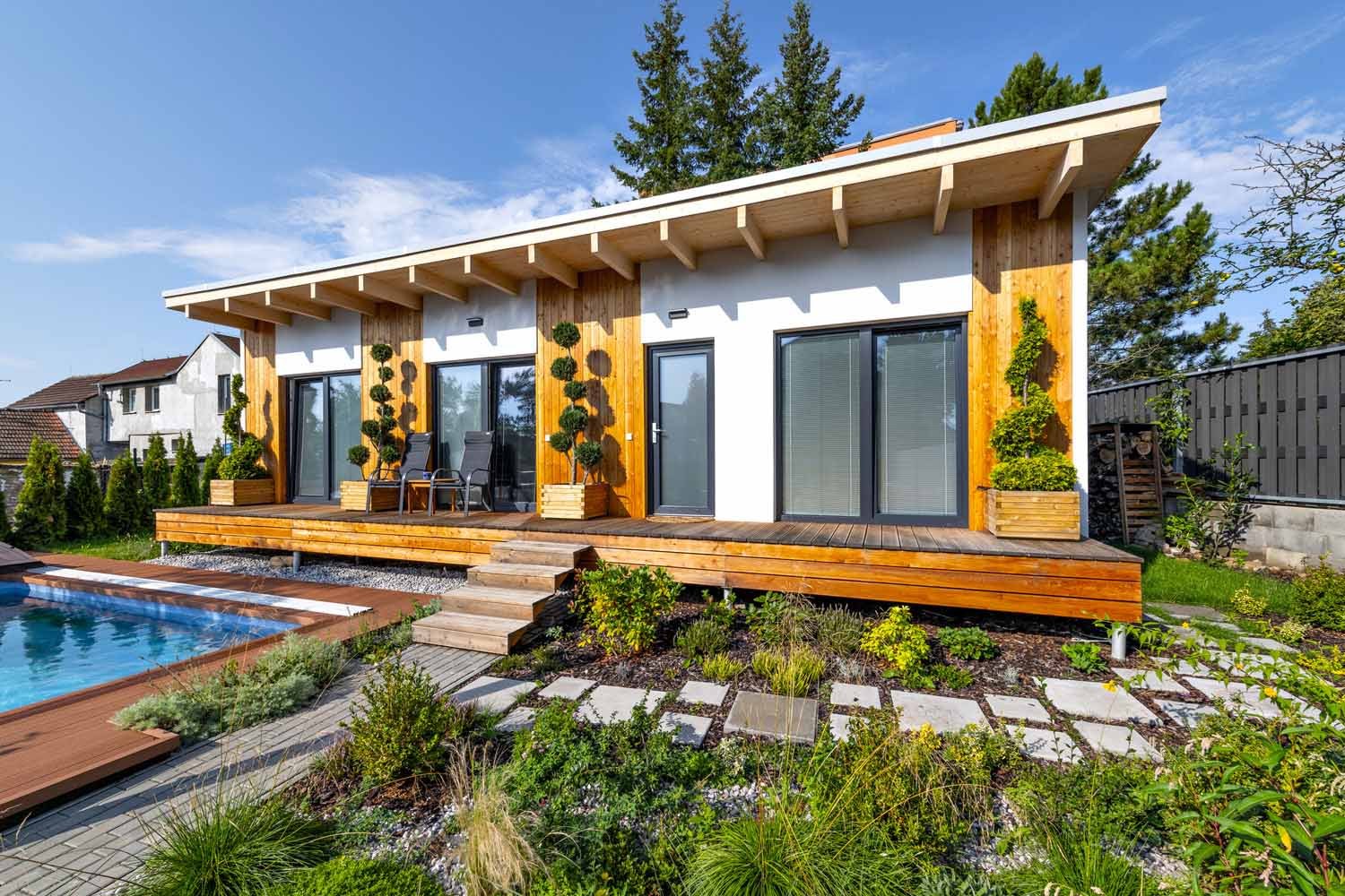Bungalov, dřevostavba, venkovský dům, moderní dům |