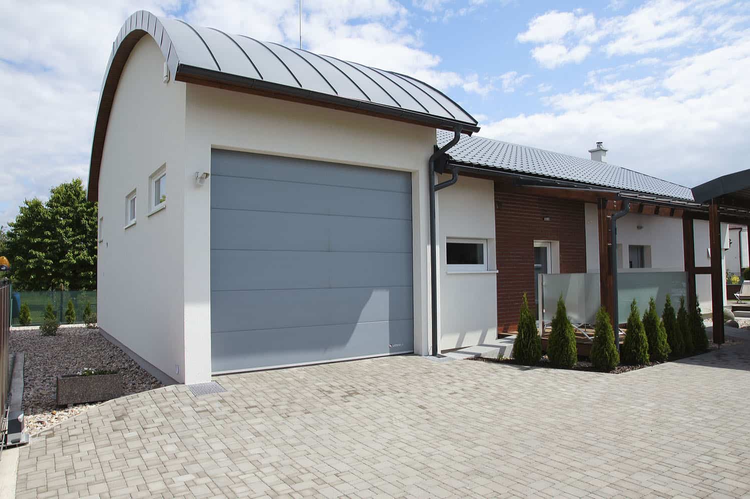 Nepřehlédnutelnou součástí atypické dřevostavby je velkorysá garáž. Do nového domova na okraji krajského města se totiž spolu s majiteli stěhoval i jejich obytný vůz, s nímž se každoročně vydávají na toulky Evropou. Výstavba výškově nadstandardní garáže tak zároveň prověřila možnosti sendvičových panelů s použitím sádrovláknitých desek Fermacell.