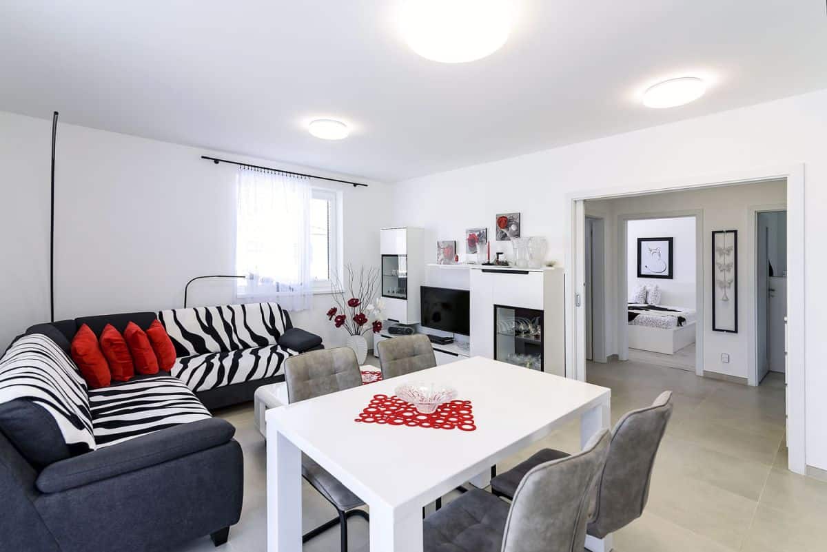 V Ekonomických stavbách mají klienti možnost libovolně dům upravovat. Tedy pokud Vám nevyhovuje kuchyně spojená s obývacím prostorem, rádi dispozici domu upravíme a kuchyni je možné řešit oddělenou od obytných prostor. Rozdělení prostoru posuvnými dveřmi je nejjednodušší varianta. Umožňuje využívat prostor kuchyně odděleně, ale i v případě potřeby nechat jeden velký společný prostor. Zároveň má toto řešení výhodu v tom, že není nutné řešit samostatný vstup do kuchyně a nezvětšujete tak prostory chodeb v domu.