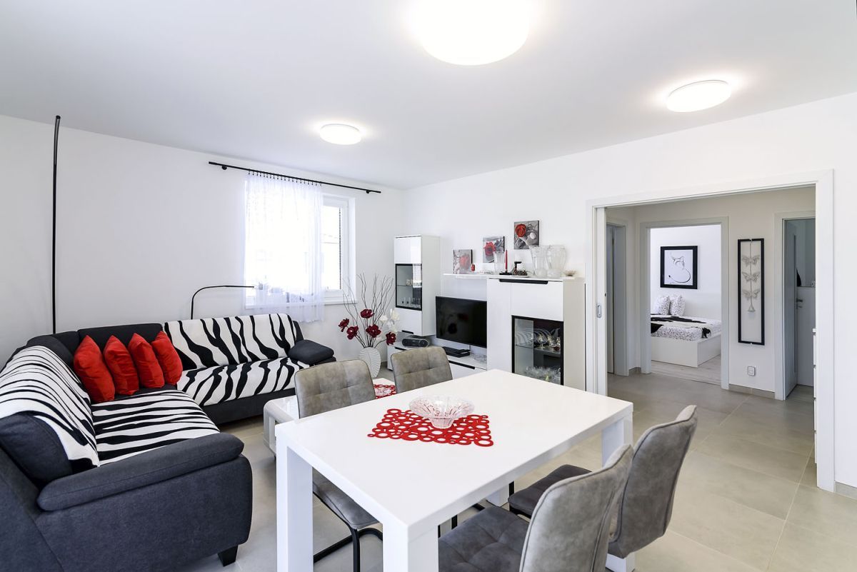 Udávaná plocha 110 m2 je včetně garáže. Výchozí dispozice domu je 3+KK+garáž.