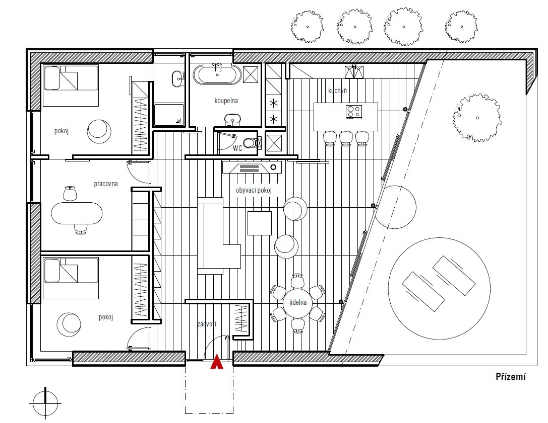 ▪ Výplně otvorů: okna hliníková s izolačními dvojskly, dveře dřevěné do obložkových zárubní a skleněné, vchodové dveře skleněné