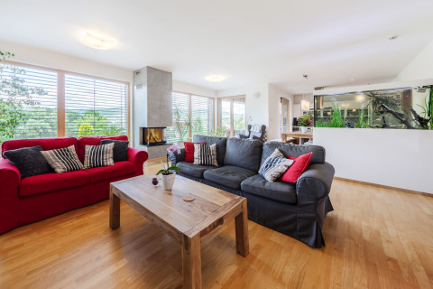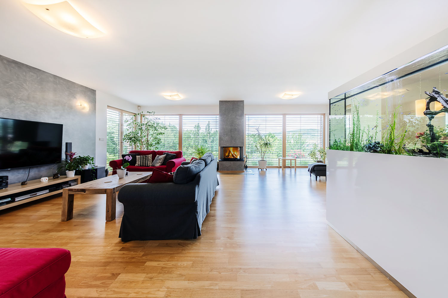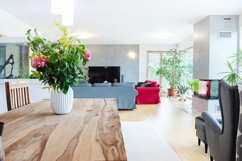 „Žádné opravy na domě nebyly potřeba a ani bych nic neměnila, všechno jsme dlouho a pečlivě promýšleli. Předělávali jsme jen povrch na kryté terase – původní zámková betonová dlažba se špatně udržovala, nahradili jsme ji keramickou dlažbou od firmy RAKO do pískového lože. Problém byl s úpravami plochy kolem bazénu. Vybrali jsme si dnes moderní povrch – kamenný povlak typu ,topstone‘. Firma jej ale provedla nekvalitně, po urgencích jej sice opravila, ale opět nekvalitně, a nebyla schopna práci dokončit. Nakonec jsme museli odmontovat již hotové posuvné zastřešení bazénu, celý povrch odstranit a provést úplně znovu s jiným dodavatelem – se společností Bauprotect s. r. o., kterou mohu jen doporučit. Určitě je dobré sbírat o každé firmě předem co nejvíce informací, že je společnost největší na trhu, není rozhodující.“