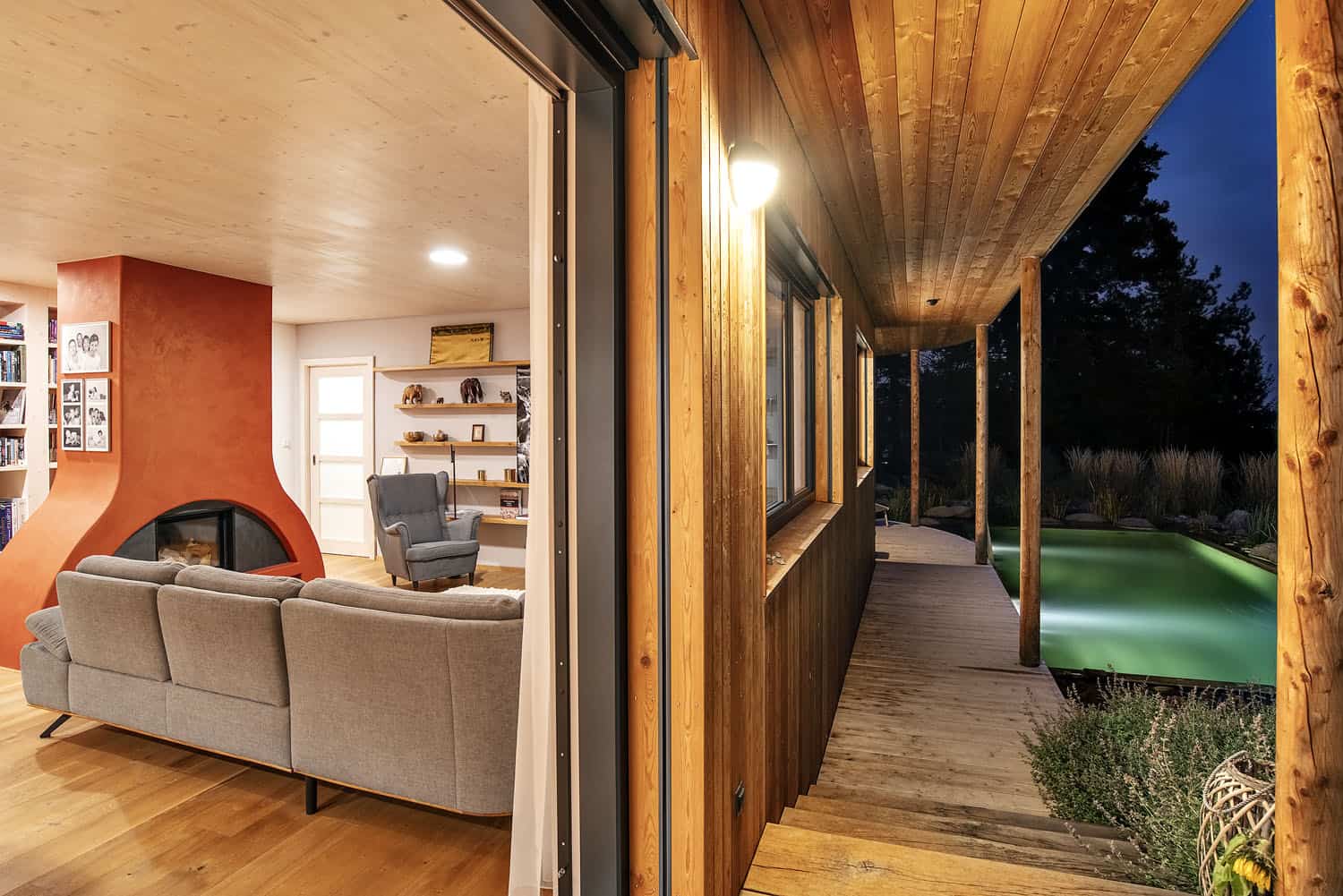 Rodina se dvěma dětmi toužila po bydlení v přírodě, v harmonii a klidu. Výběr dřevostavby byl pro ně primární volbou: „Vztah ke dřevostavbě jsme si vytvořili v Jižním Tyrolsku, kde jsme měli možnost v několika moderních dřevostavbách strávit několik týdnů,“ říkají majitelé domu.