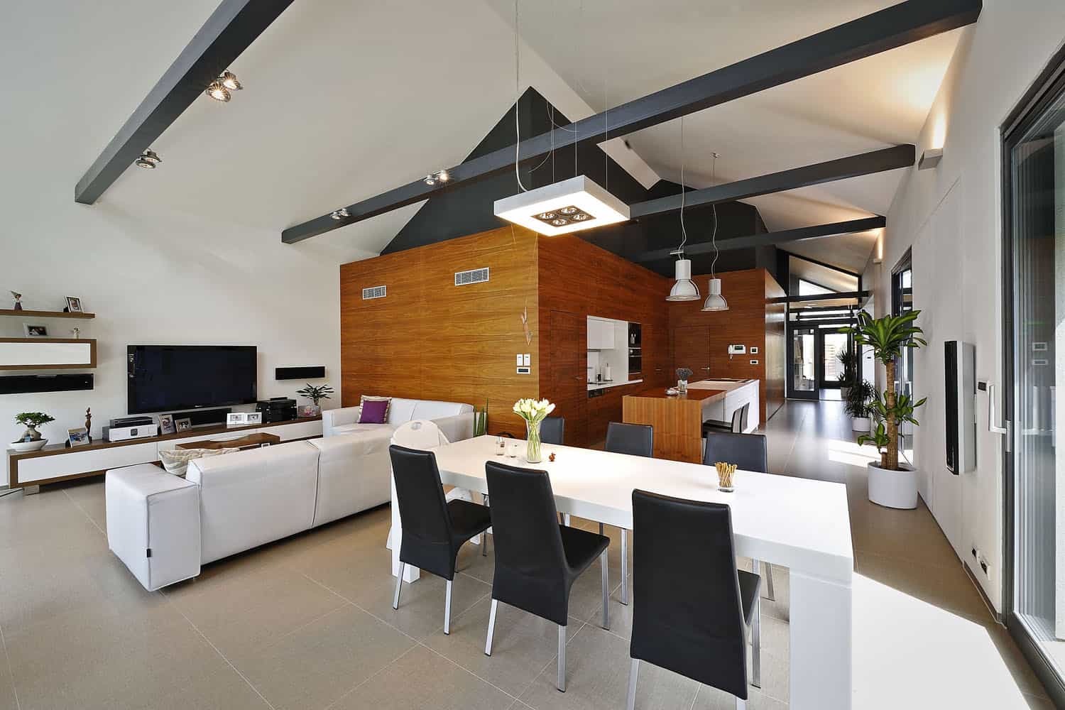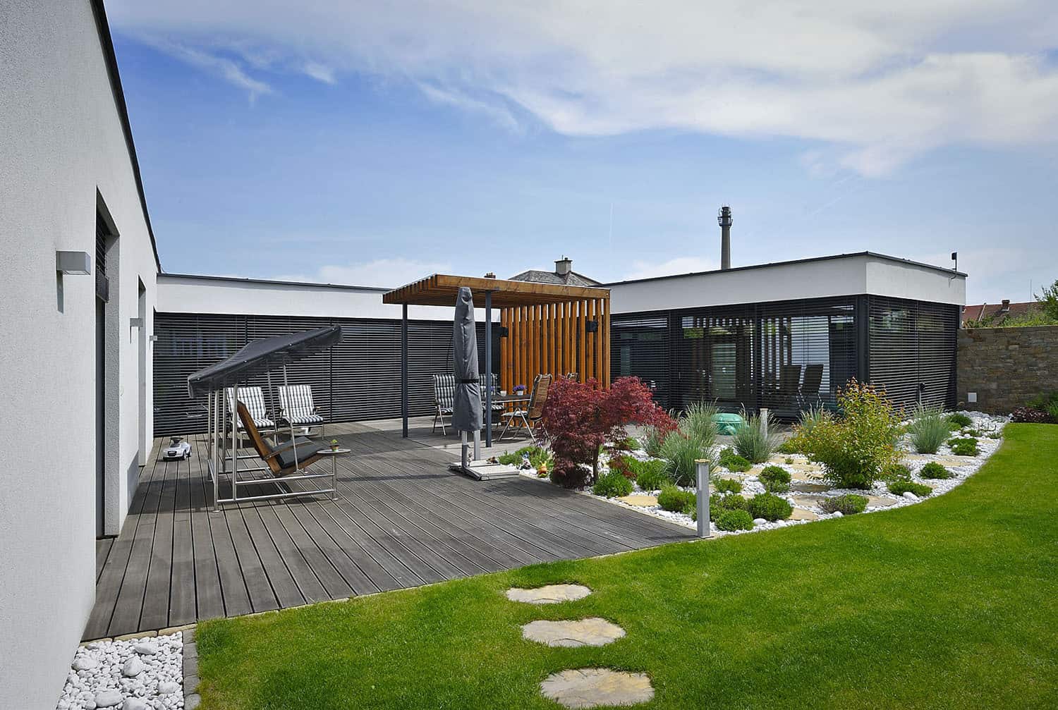 Za kamennou zdí v klidné čtvrti menšího moravského města není z ulice mnoho k vidění. Moderní dům, který se za ní ukrývá, poskytuje rodině velký komfort bydlení a dokonalé soukromí.