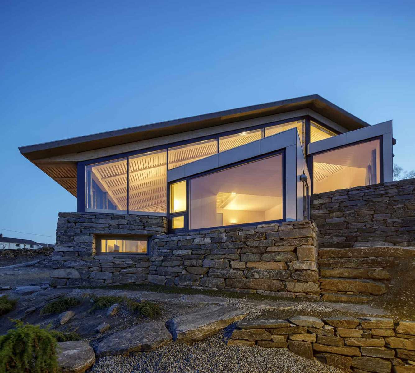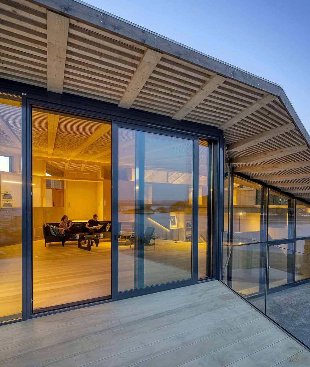Splynutí s přírodou, leitmotiv atypické stavby postavené v lokalitě Reilstad na norském ostrově Finnøy, není v tomto případě jen klišé, s nímž se setkáváme u řady dnešních rodinných domů. Prosklená architektura se tu nevtíravě prolíná s prostředím nedotčeného skalnatého mořského pobřeží.