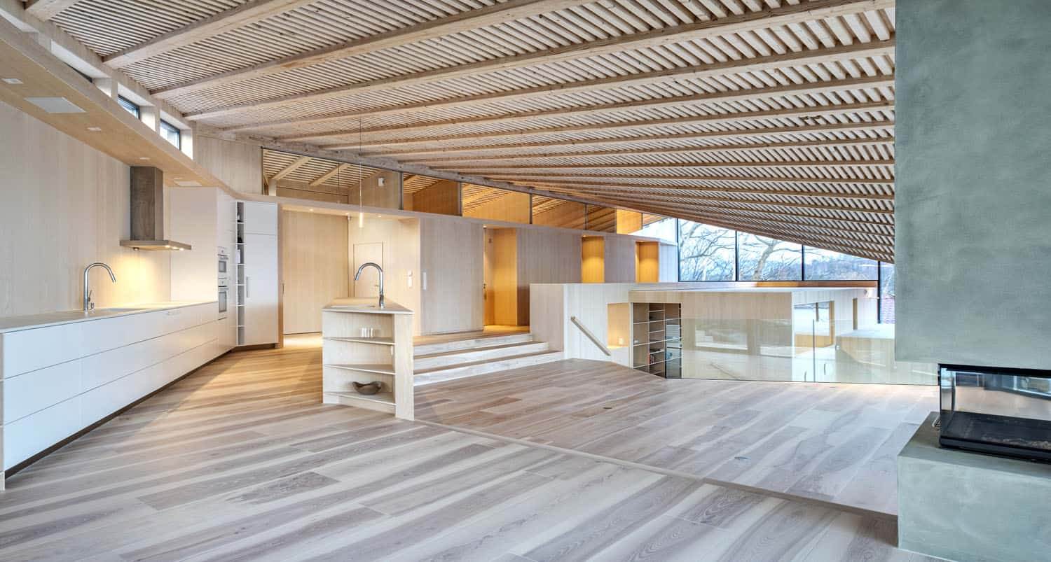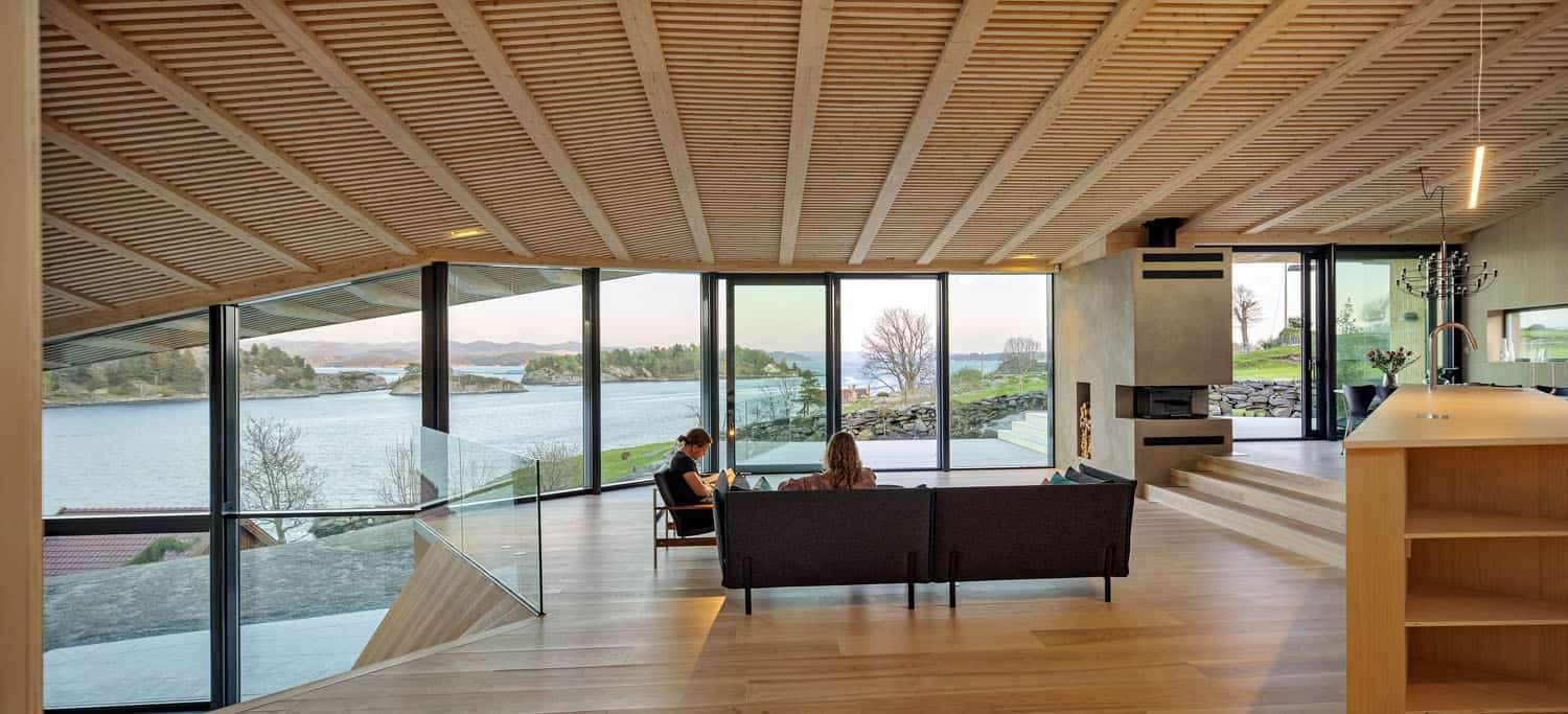 Majitelka domu se po mnoha letech života v zahraničí rozhodla vrátit se do míst, kde se narodila. Krása drsné krajiny, dechberoucí výhledy a věčná symfonie hukotu mořských vln, které se rozbíjejí o rozeklané skalní útesy, představovaly pouto na celý život. Architektonické kanceláři Helen & Hard z Osla zadala úkol navrhnout dům, který dokonale splyne se svým prostředím. „Rozhodli jsme se jít ještě dál a kromě maximalizace výhledů jsme navrhli také interiér jako pokračování okolní krajiny. Je celý z jasanového dřeva a jeho profilování se odvíjí od charakteru terénu,“ uvádí architekt Dag Strass, jeden z autorů návrhu.