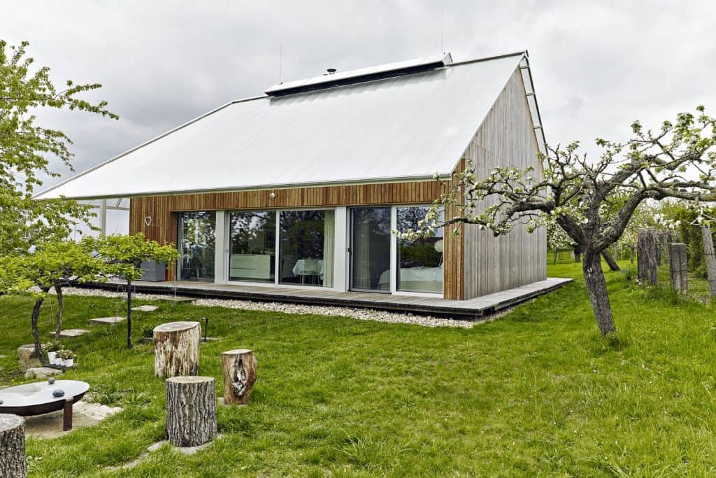 První koncept stavby vznikal na poměrně malém pozemku. V průběhu navrhování se však investorům podařilo koupit sousední sad a plocha zahrady se tak ztrojnásobila.