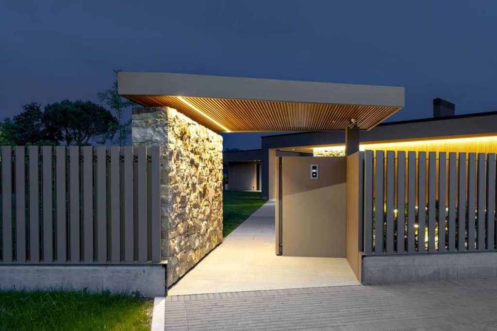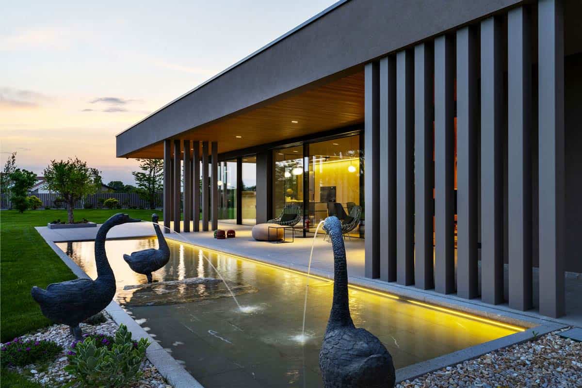 Architekt Duilio Damilano navrhl moderní bezbariérový dům, jehož horizontální linie se nenásilně zapojují do okolního prostředí. Vybral přírodní materiály a barvy v místě tradičně používané – dubové dřevo, kámen pocházející z nedaleké oblasti Credaro a nenápadné šedé omítky.