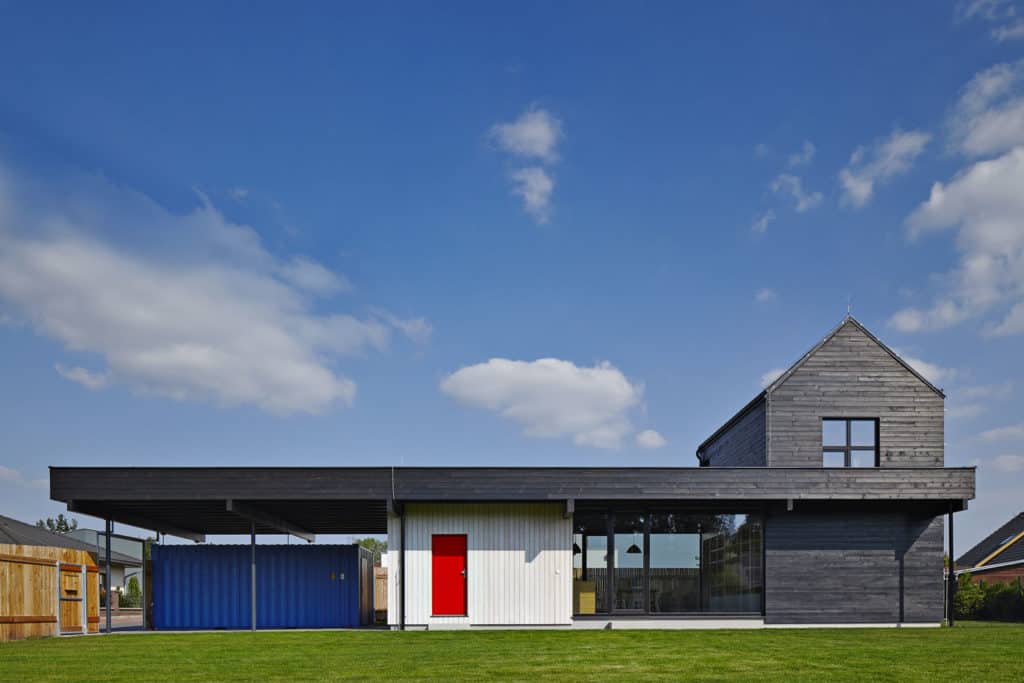 Nezvyklá dřevostavba stojí v nové zástavbě na poměrně malé rohové parcele, obklopené dalšími domy, ze dvou stran se současně se dotýká příjezdové komunikace. Jejími autory jsou architekti libereckého architektonického studia Mjölk architekti. Majitelé je oslovili, neboť se jim, jak sami řekli, líbil jejich jednoduchý, čistý a hravý styl.
