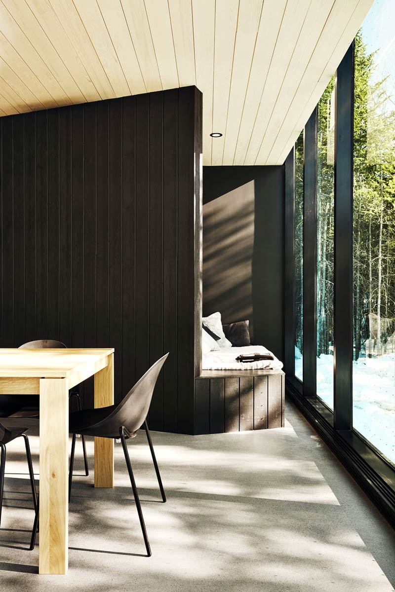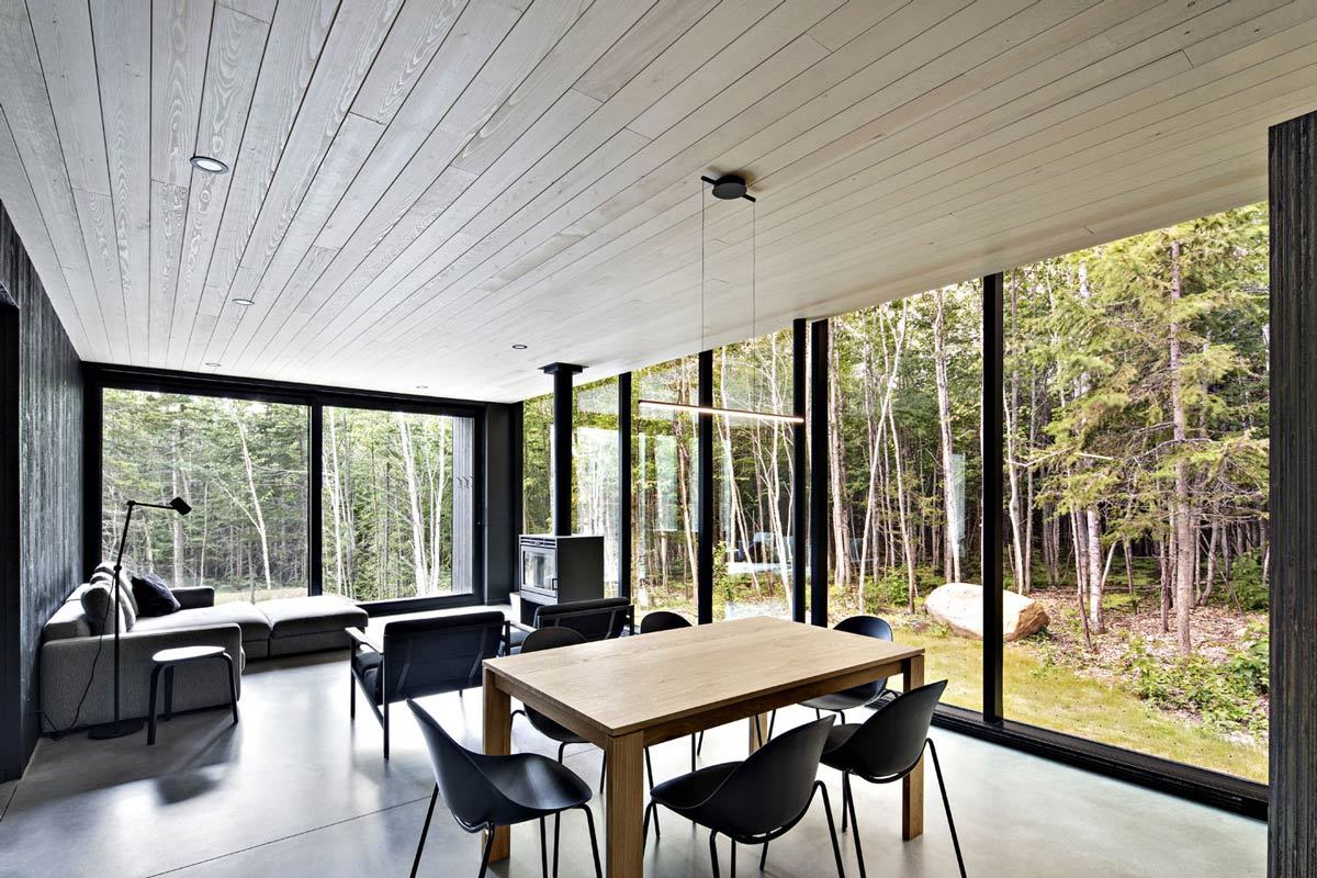 Dvojice totožných dřevěných staveb, každá o rozloze 80 m2, se nachází v lokalitě Petite-Riviere-Saint-Francois, poblíž lyžařského střediska Le Massif de Charlevoix v kanadském Québecu. Architektům šlo především o spojení obyvatel srubu v intimním vztahu s přírodou, spíš než je oslňovat ohromujícími výhledy do okolí.
