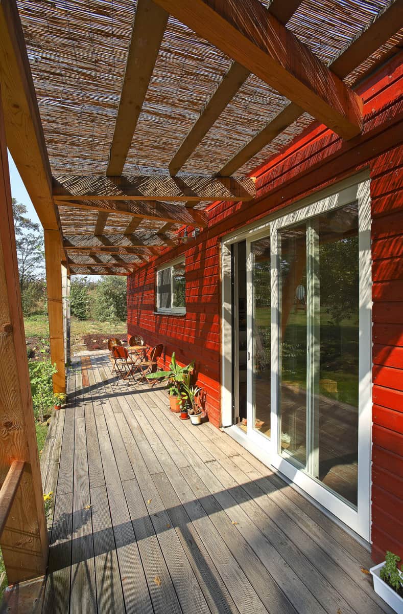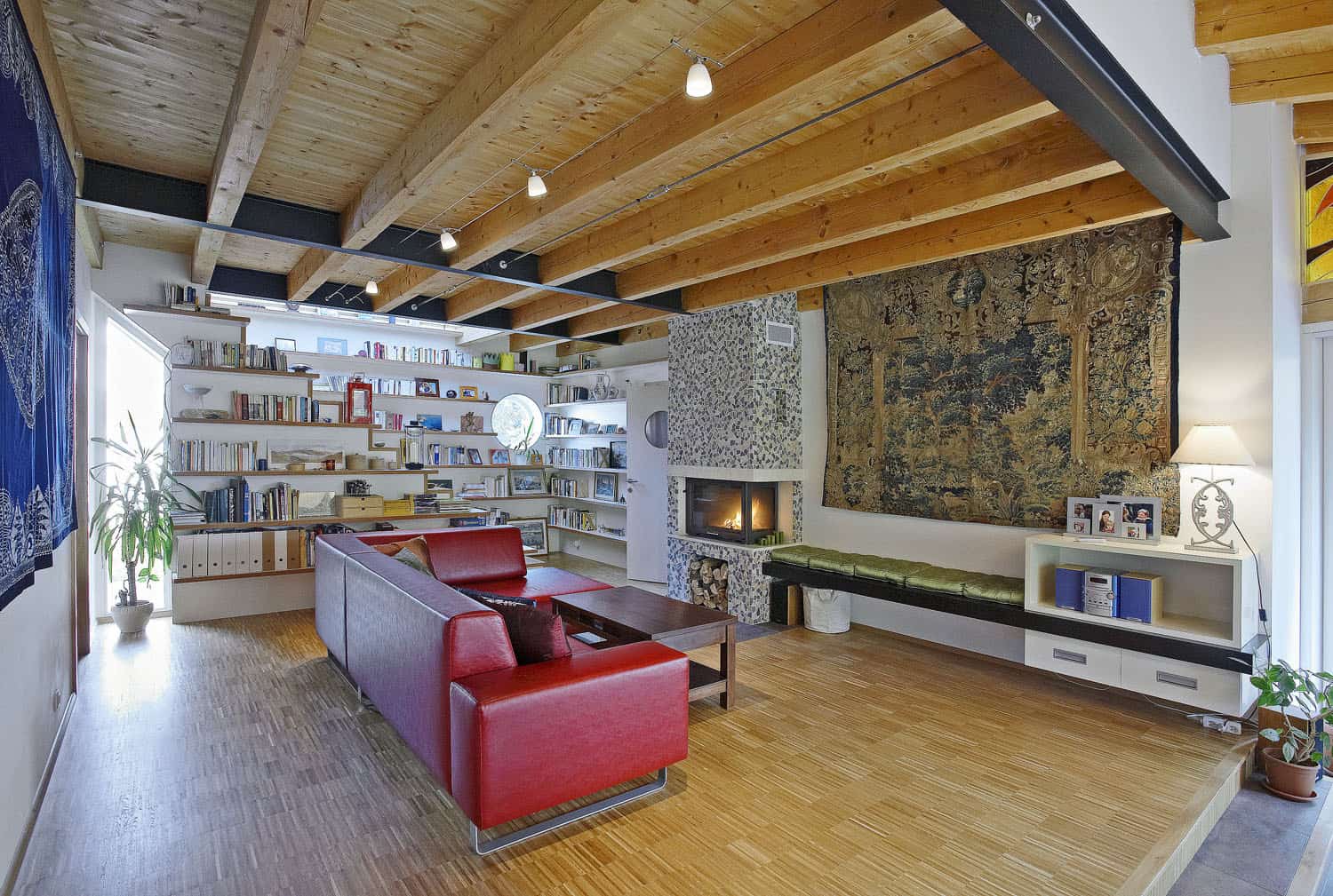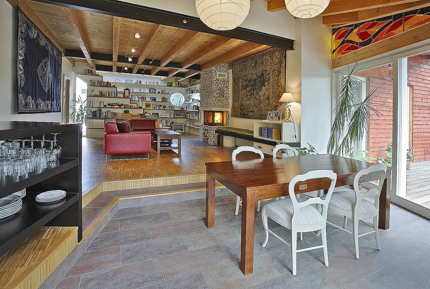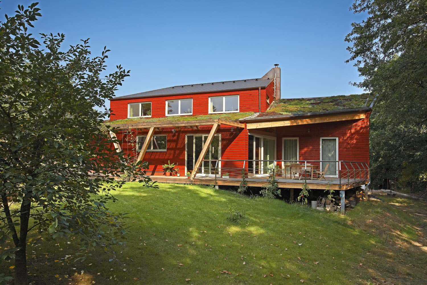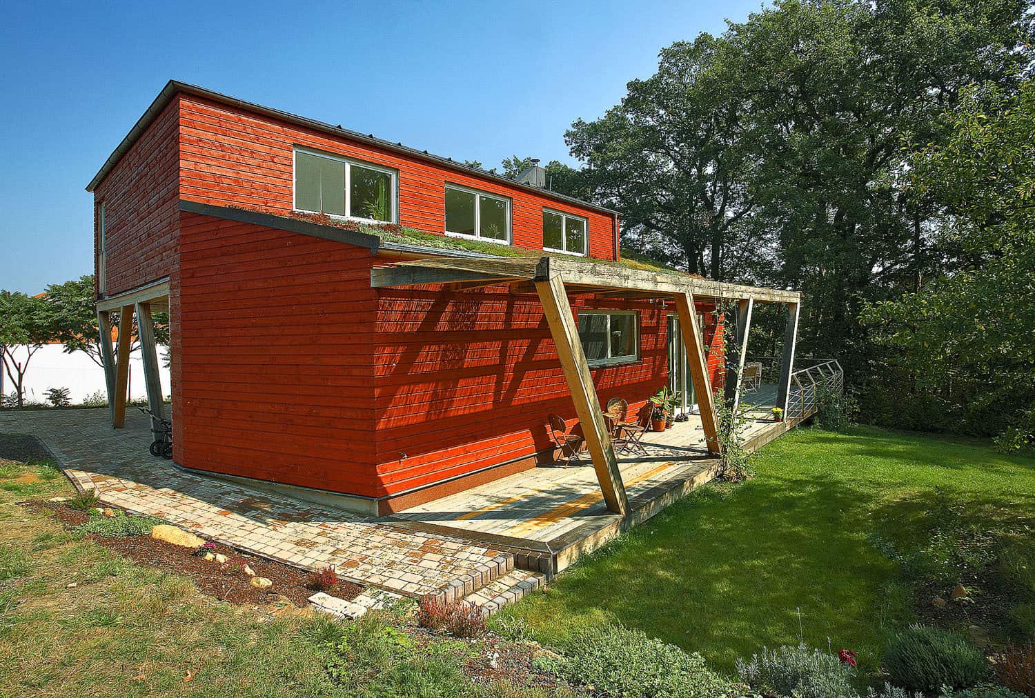 Cihla a dřevo se jako dva živly snoubí a doplňují v atypicky tvarované dřevostavbě, postavené v romantickém zákoutí na konci malé středočeské obce.