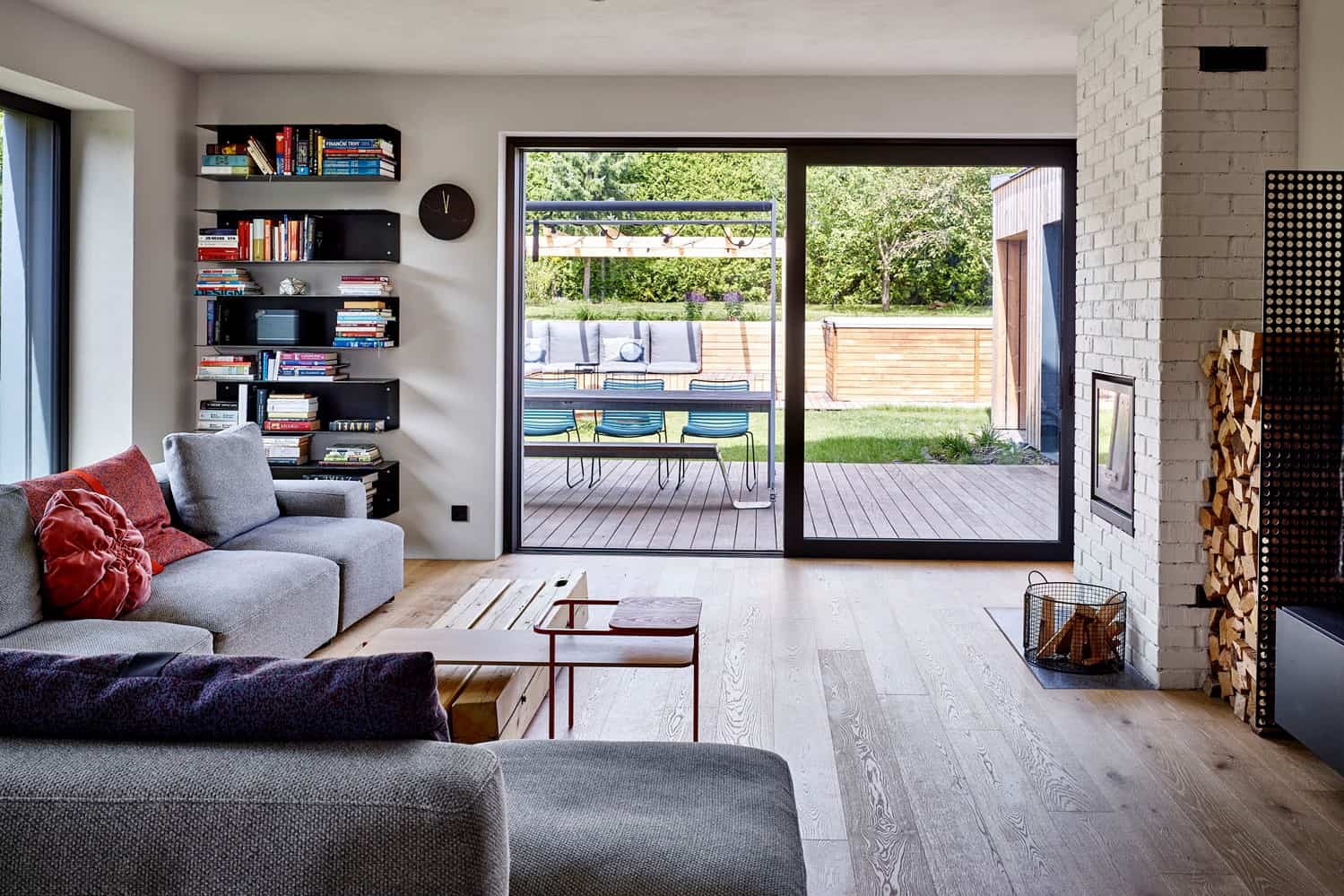 Interiér byl řešen hlavně s ohledem na dostatek denního světla a propojení se zahradou. Okna jsou výrazně větší, přibyly přímé výstupy na zahradu.
