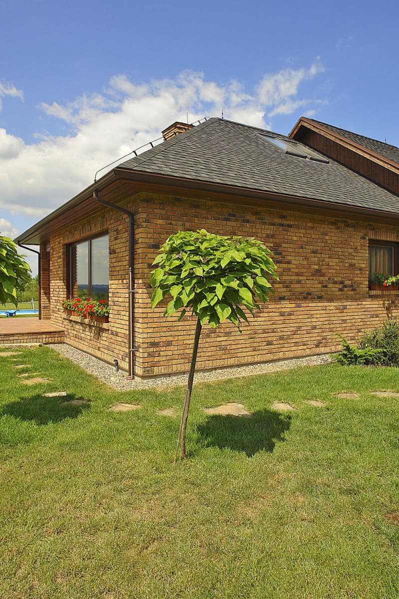 Majitelé měli od počátku jasno – jednoznačně byli pro dřevostavbu, zároveň se jim ale líbila, i s ohledem na praktičnost a trvanlivost, fasáda dokončená lícovými cihlami. Obě přání splnila společnost Holiday – Pacific Homes – Bohemia, kterou si vybrali po průzkumu na internetu jak kvůli materiálům, tak kvůli netradičním a netypickým návrhům rodinných domů.