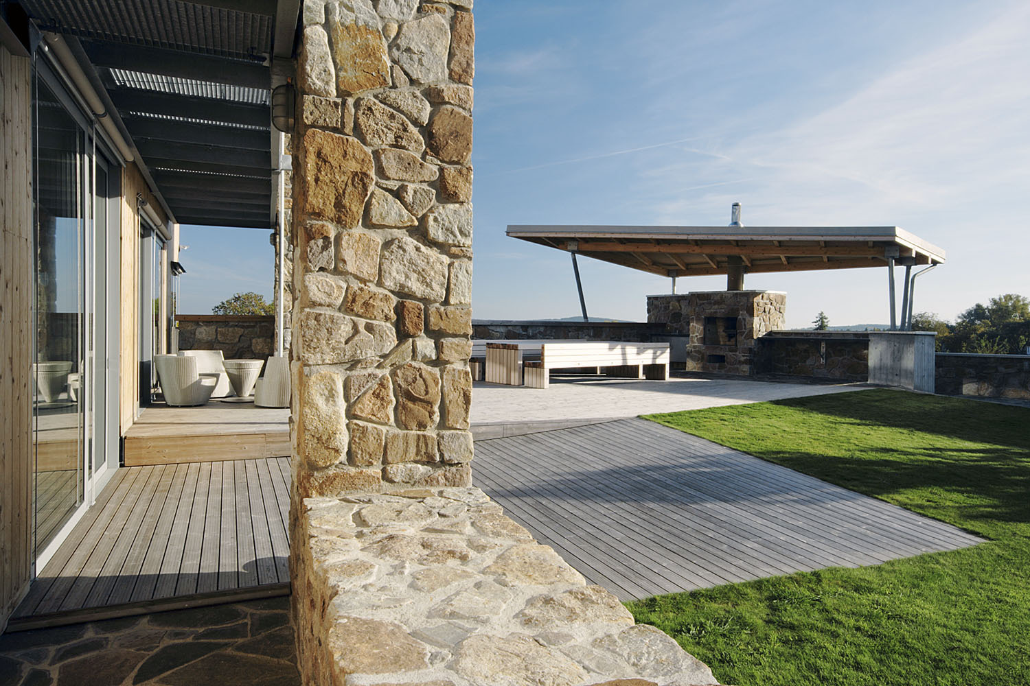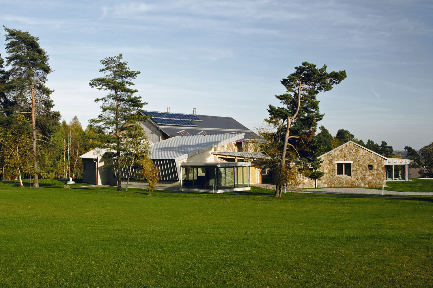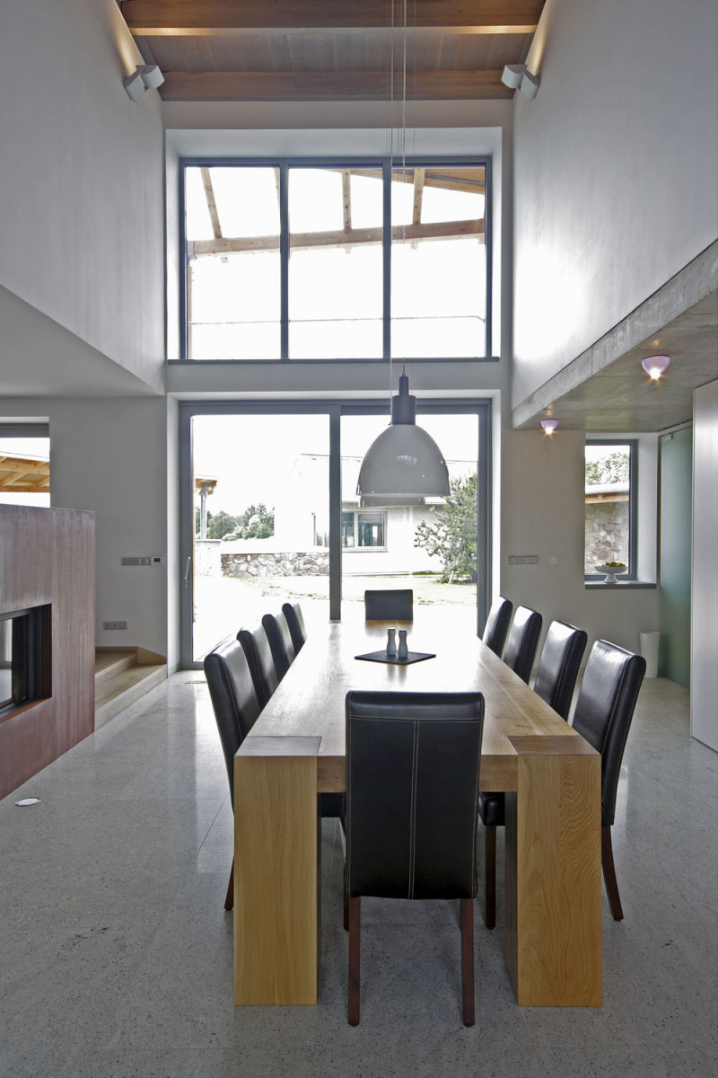 Stavebníci měli představu rodinné usedlosti s komfortním obytným domem, krytým bazénem a samostatným bydlením pro rodiče. Vzhledem k poloze na slunném jihovýchodním svahu, ale v otevřené krajině si přáli uzavřený dvůr, který vytvoří intimní prostor chráněný před větrem a poskytne rodině soukromí. S architektem se shodli, že výtvarné pojetí by mělo ctít polohu domu v chráněné krajinné oblasti a čerpat z tradiční venkovské architektury, ale nekopírovat historické prvky, spíše je přetvářet do moderní podoby.