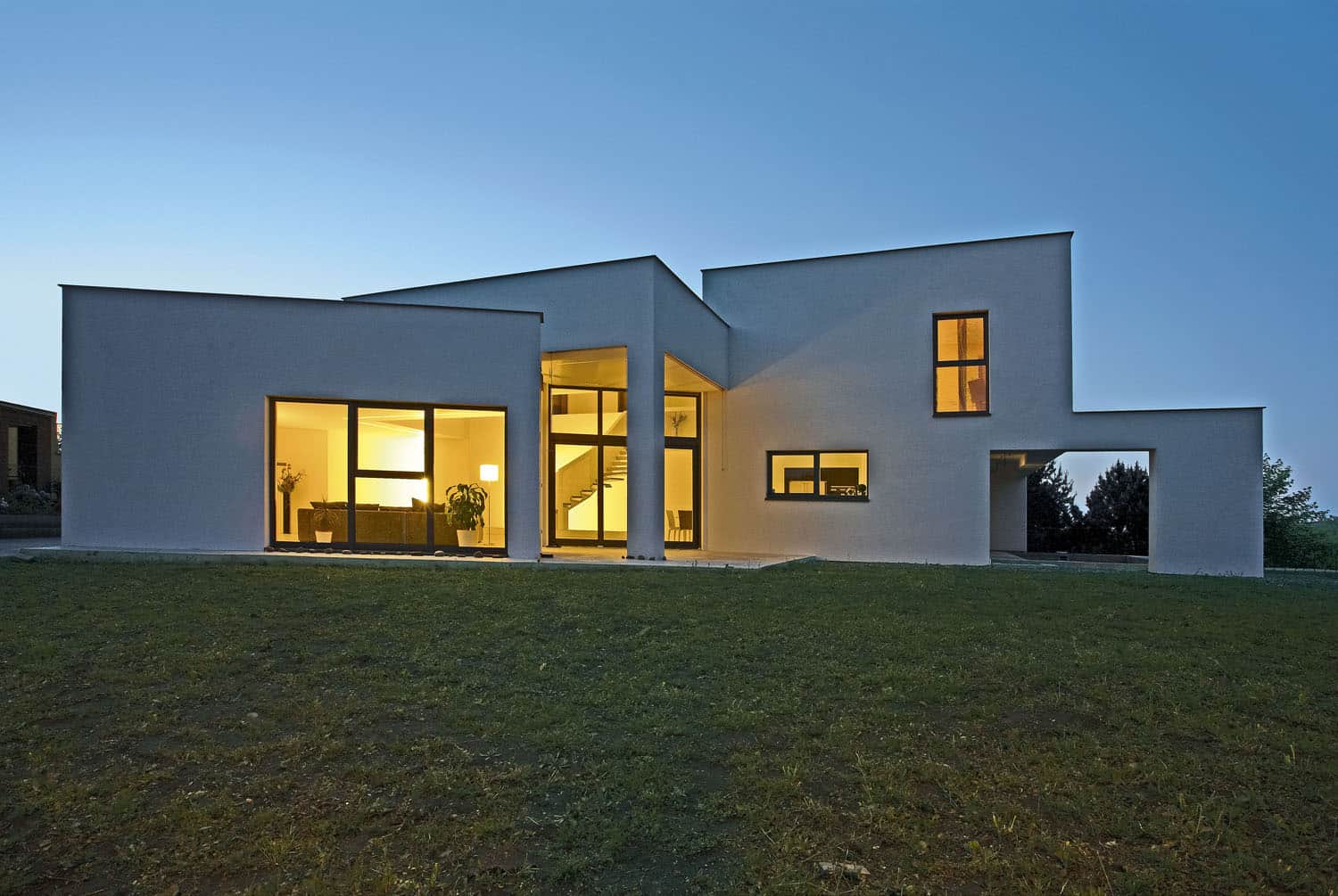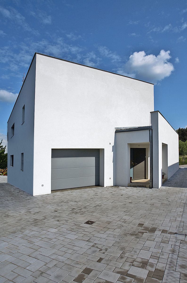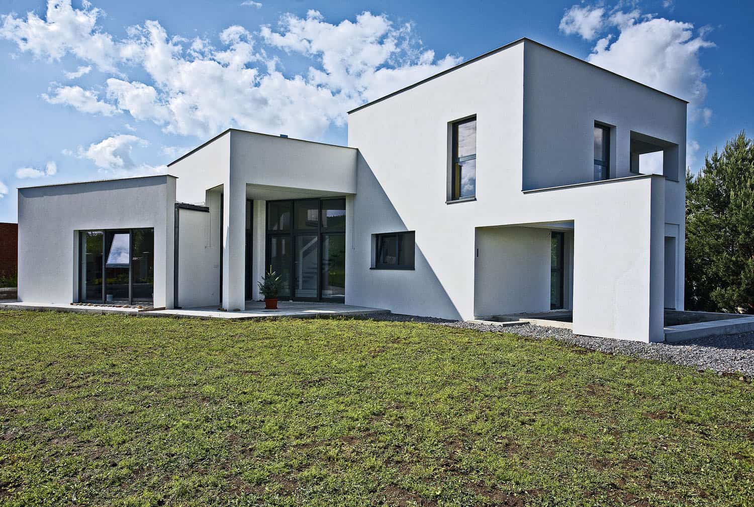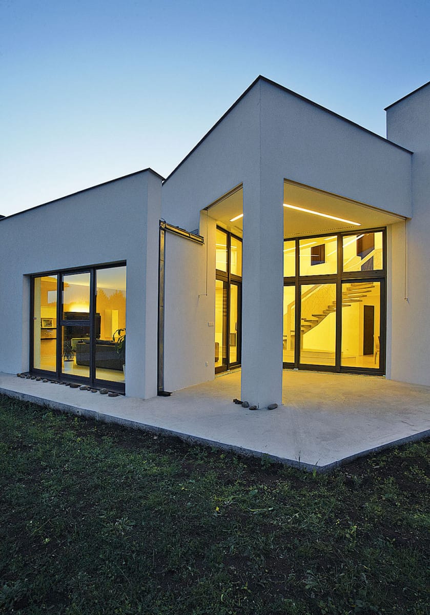 Atypický dům, postavený na okraji menšího středočeského města, napohled připomíná spíše avantgardní skulpturu. Základní tvůrčí ingredience této architektury tvoří jednoduchá geometrie, světlo, volný prostor a špičková technická kvalita.