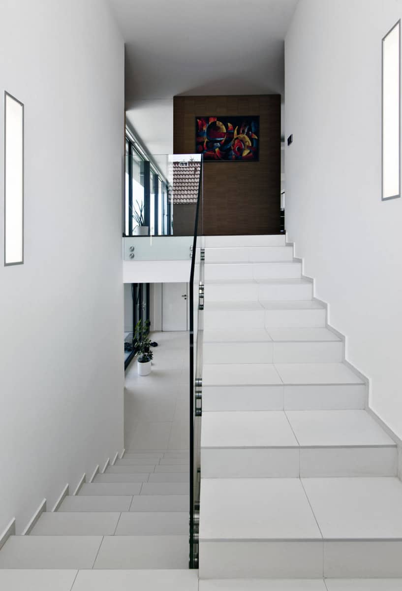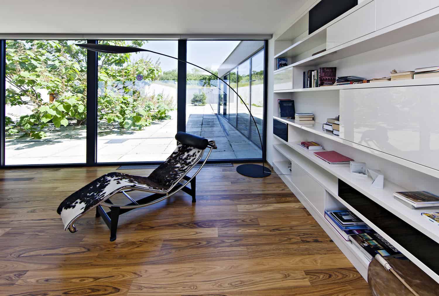 Dnes již není ani stopy po typické socialistické „kostce“ s břízolitovou omítkou a třídílnými okny, která se v sedmdesátých letech minulého století u nás řadila do kategorie vyššího standardu rodinného bydlení. „Hlavním cílem rekonstrukce byl co nejvíce otevřený dům, s důrazem na výhled a maximální komfort,“ říká majitel domu. „Návrh přestavby se vyvíjel postupně na základě diskusí s architektem Davidem Machačem. Dávám přednost velkorysému přístupu, nebránil jsem se ani výrazným změnám.“ A tak to jediné, co z původního domu zůstalo, je část obvodového zdiva a stropů a garáž.
