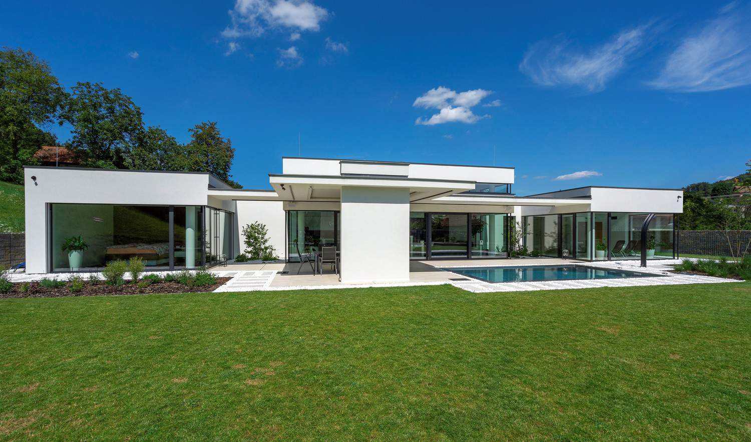 Projíždíte-li malou obcí nedaleko Zlína, velké nové vily postavené ve funkcionalistickém duchu si téměř ne všimnete. A to je nejlepší důkaz, že kvalitní moderní architektura se dokáže harmonicky sžít s venkovským prostředím i s přírodou a nav zájem se neruší.