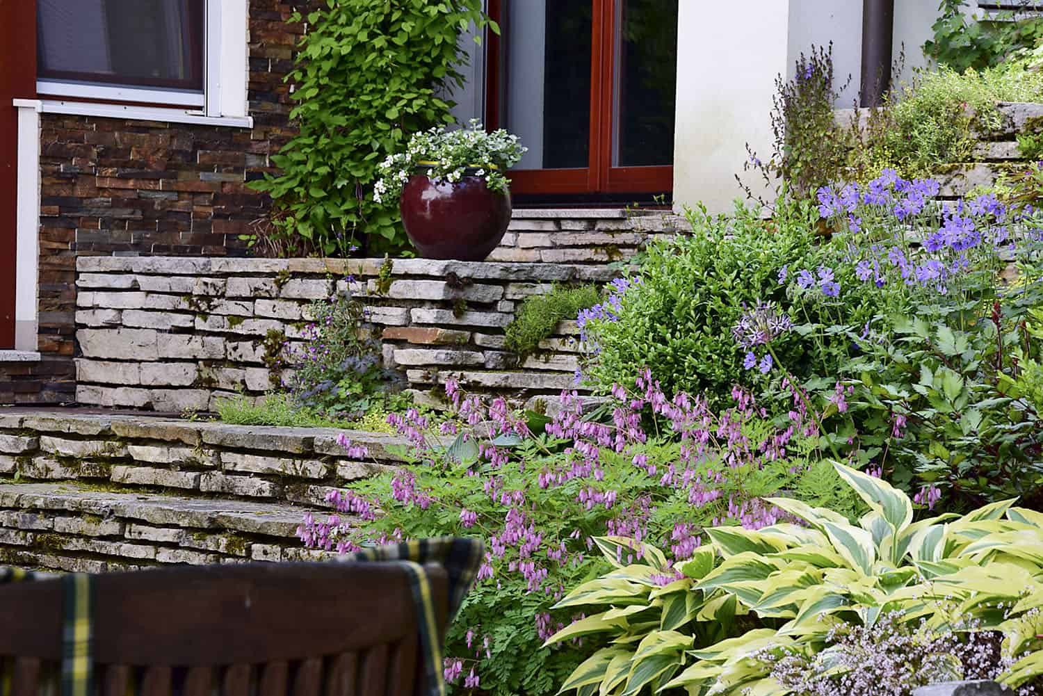 Tvorba zahrady ve svažitém terénu bývá i pro mnohé odborníky tvrdým oříškem. Pokud se ale vše vymyslí do detailu, možná se to povede tak jako na rodinné zahradě v Jindřichově Hradci. V tomto případě se stal svah velkou výhodou, majitelé mají krásný výhled do okolí a na řeku Nežárku, která dodává místu specifickou atmosféru a zdárně ovlivňuje mikroklima, díky němuž tady roste všechno jako z vody.